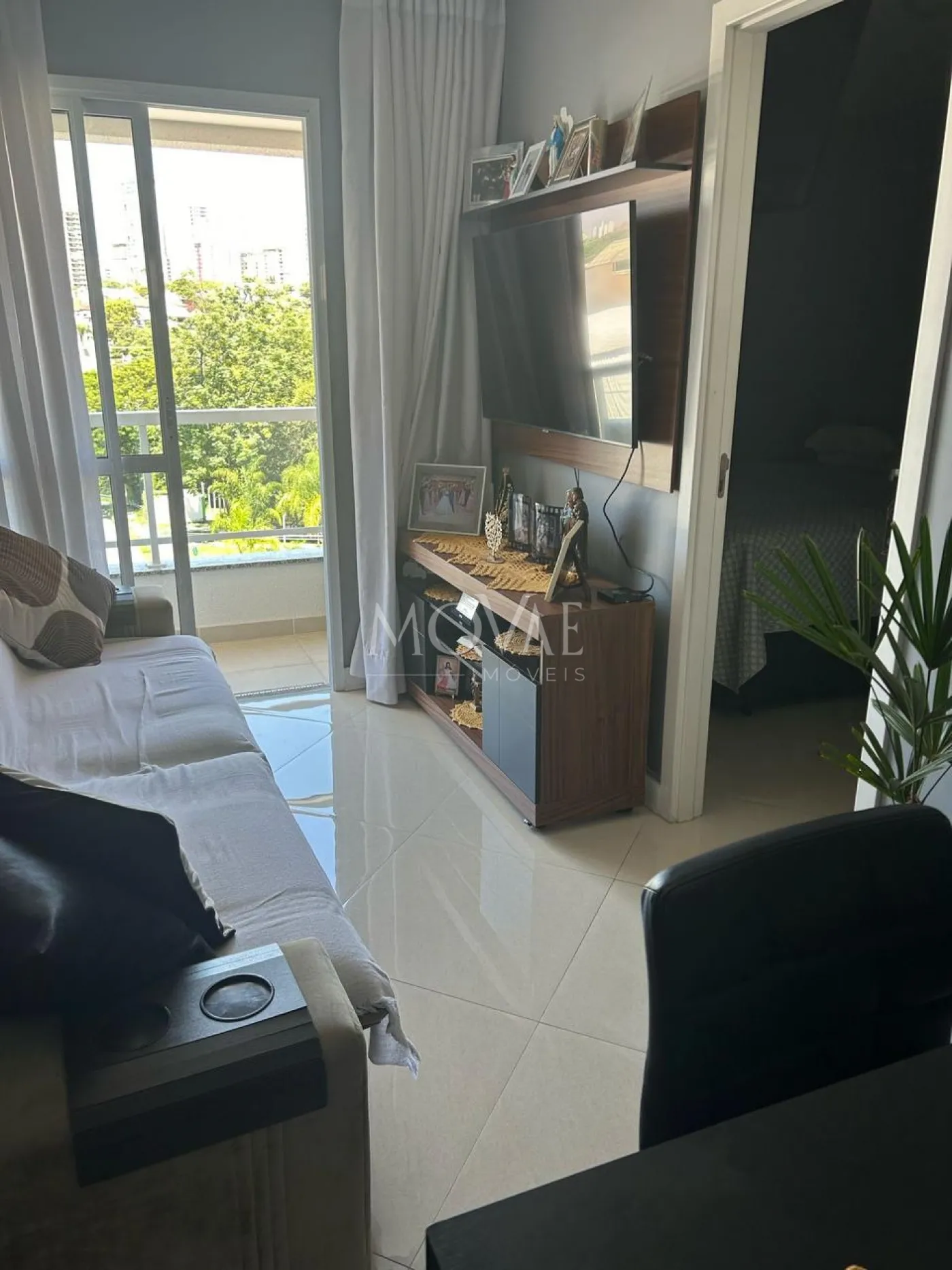 -1 Sala com painel e TV e sofá;
