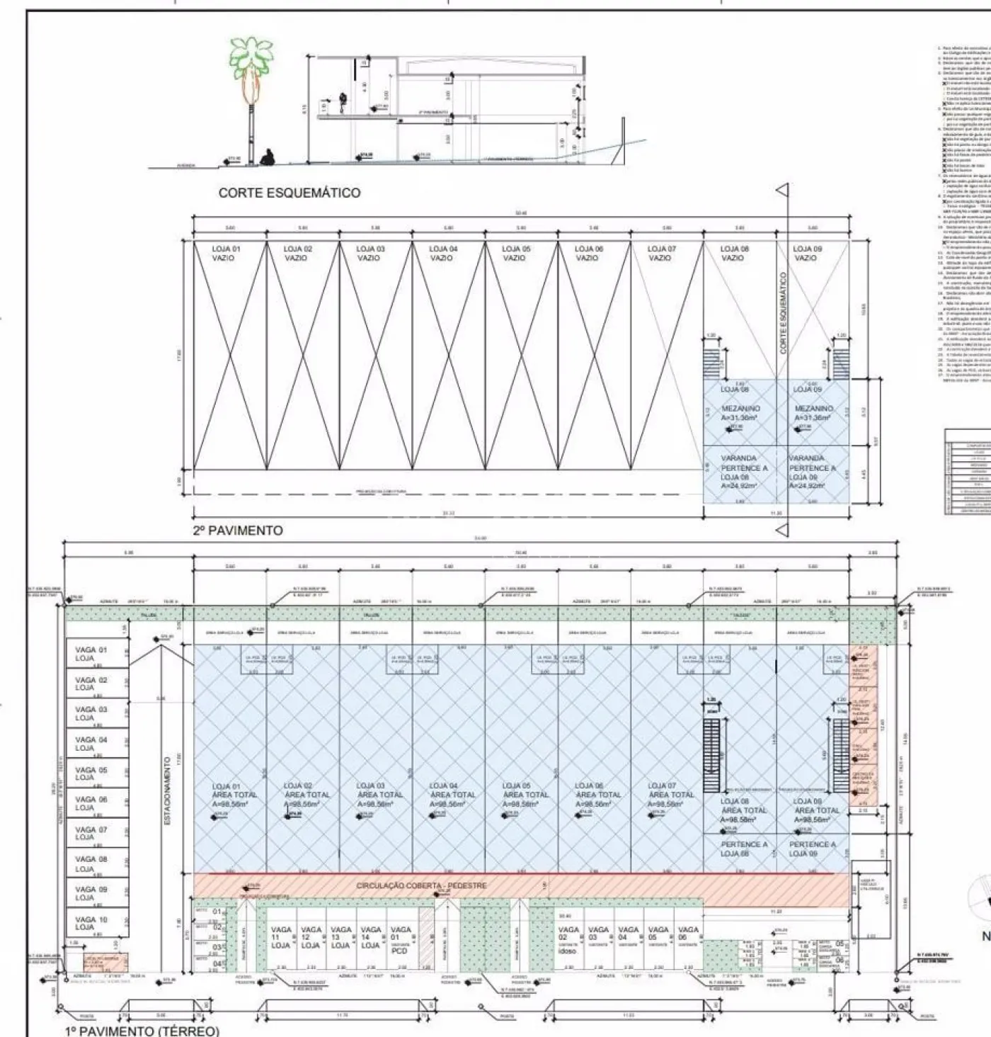 09 lojas espaçosas com 98m², sendo 2 unidades com mezanino pronto de 128m²