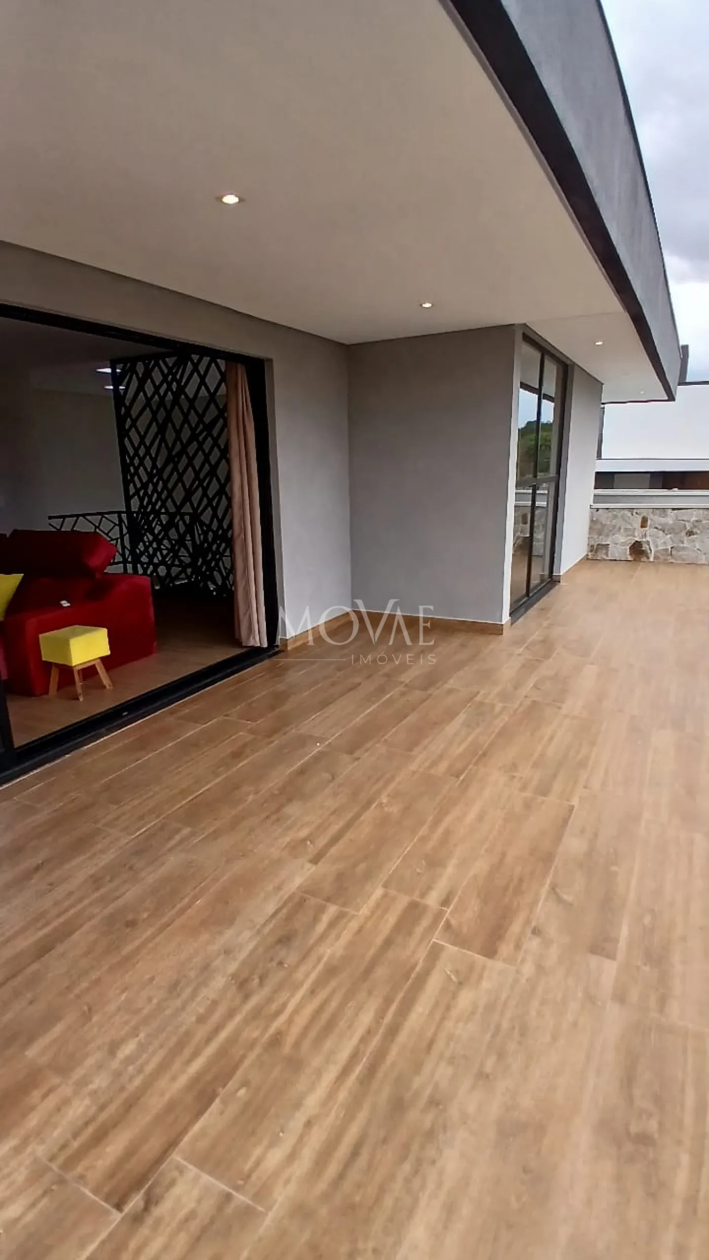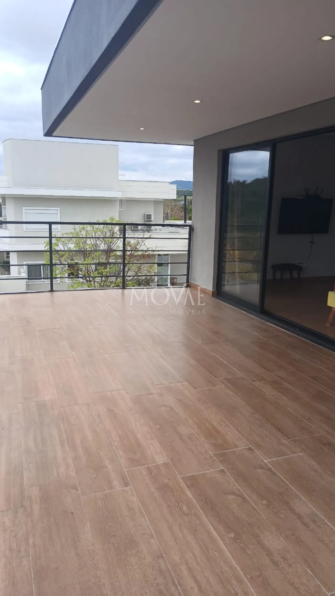 Varanda incrível e espaçosa. Ideal para passar bons momentos de bate-papo entre família e amigos e com uma vista maravilhosa para a área de lazer do condomínio e a serra da Mantiqueira.