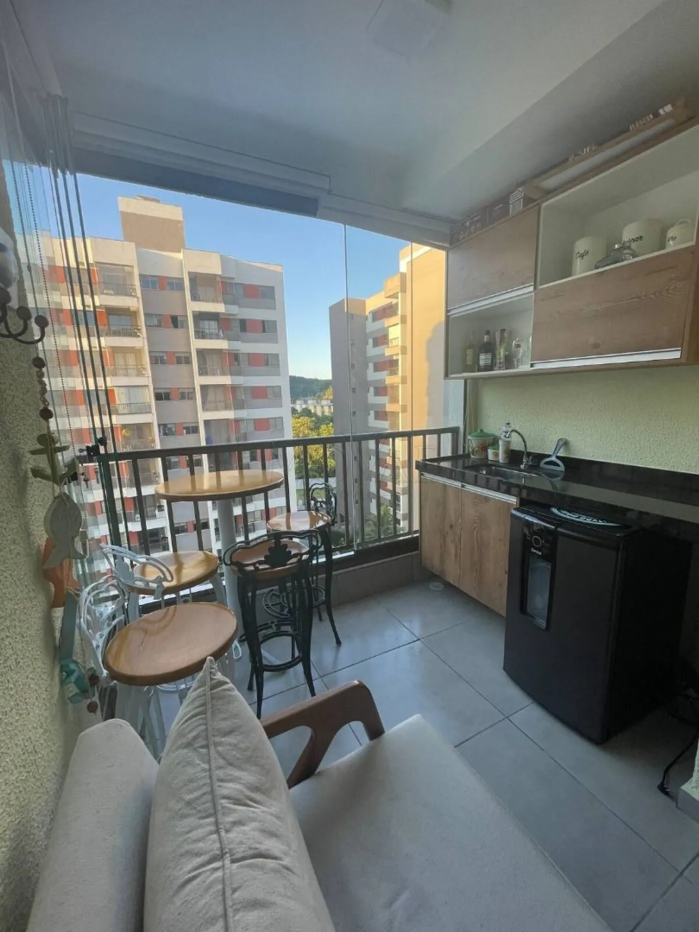 - sacada com churrasqueira e cortina de vidro