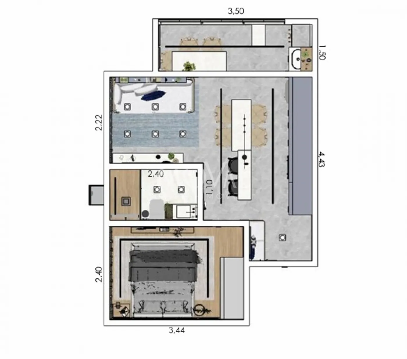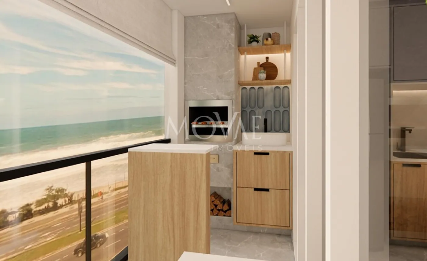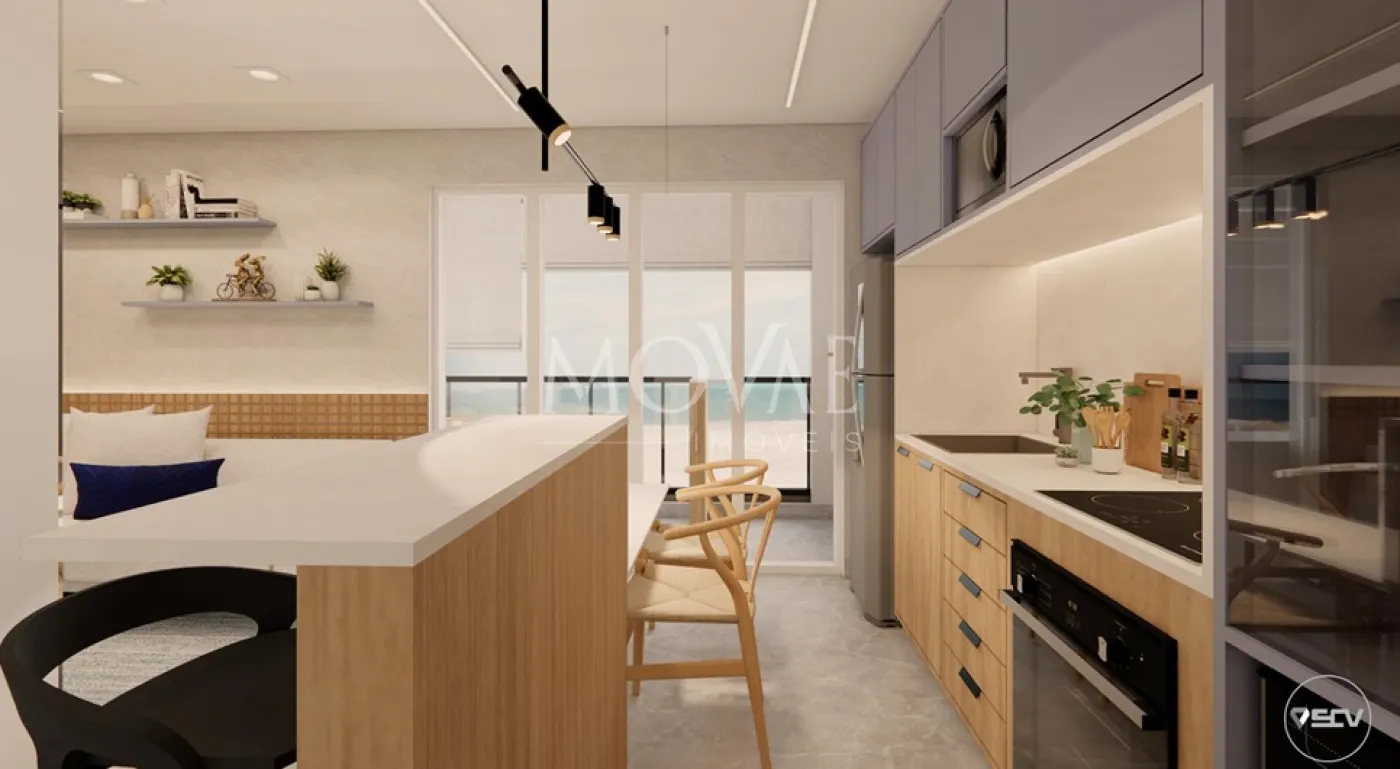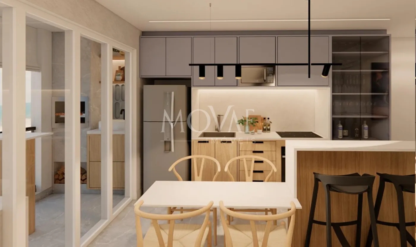 Apartamento de 1 dormitório 36 metros sala conjugada com cozinha, banheiro social, varanda gourmet com ponto para churrasqueira a gás e uma vaga de garagem.
