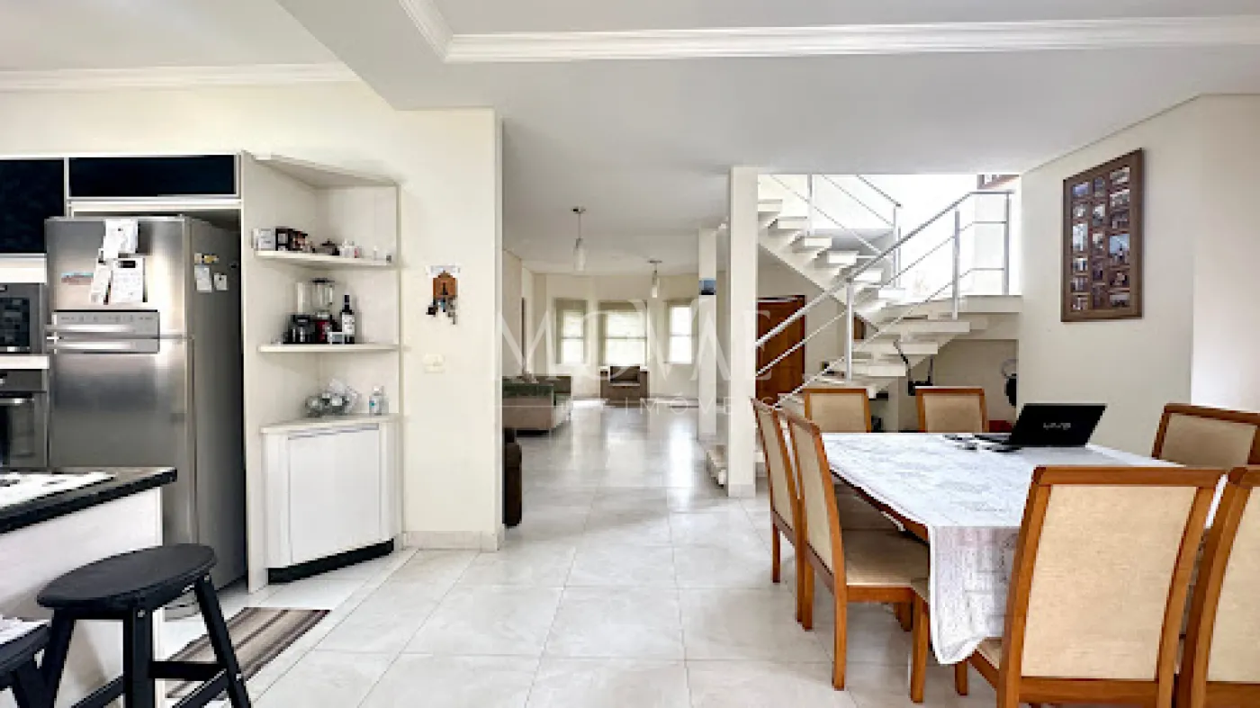 **Sala de estar e jantar integradas**, criando um ambiente aconchegante e sofisticado
