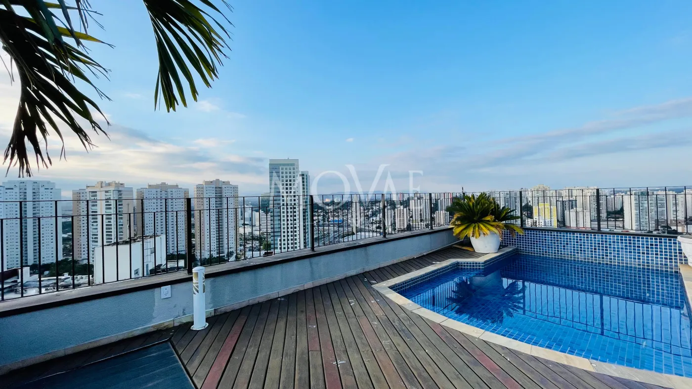 Cobertura Jardim Aquarius com vista permanente para montanha.