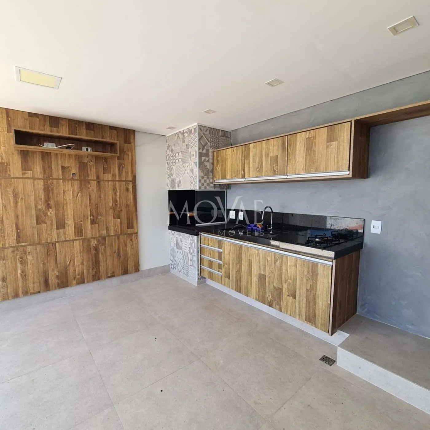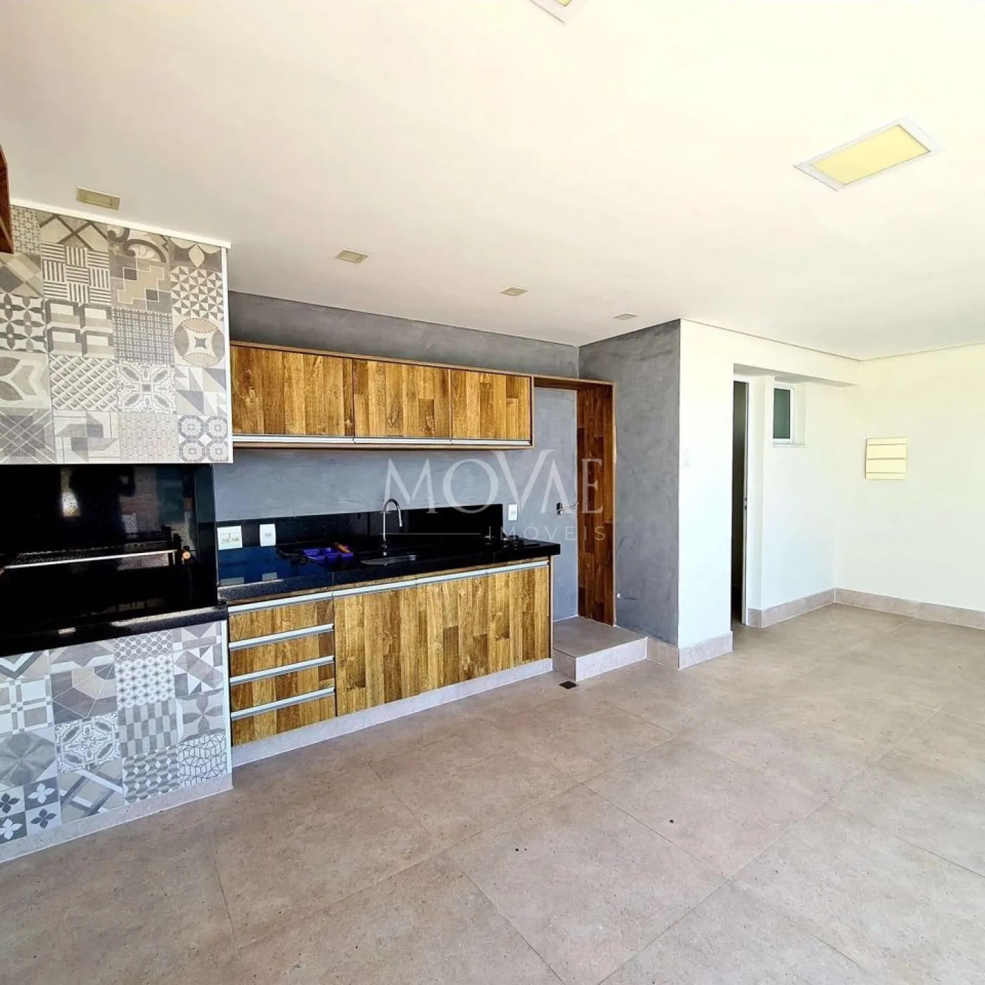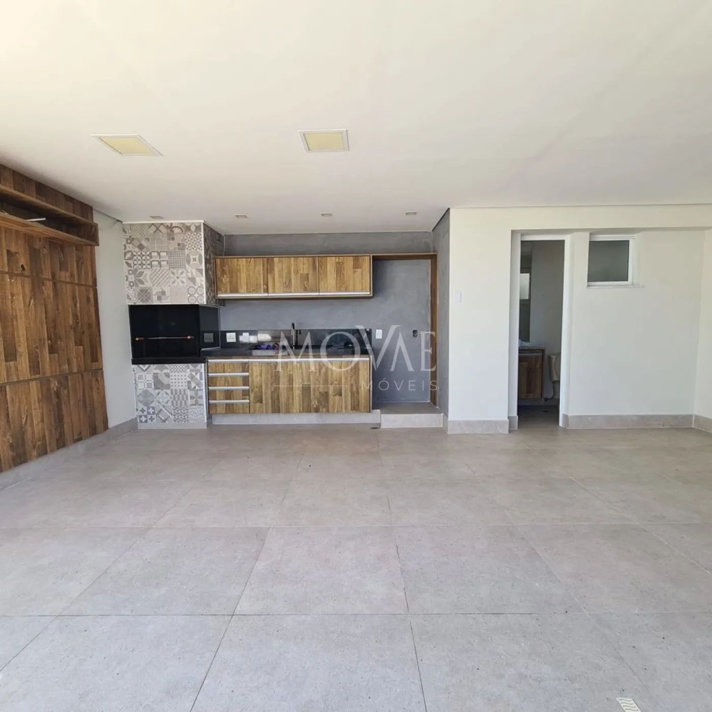 Piso em porcelanato, oferecendo durabilidade e elegância.