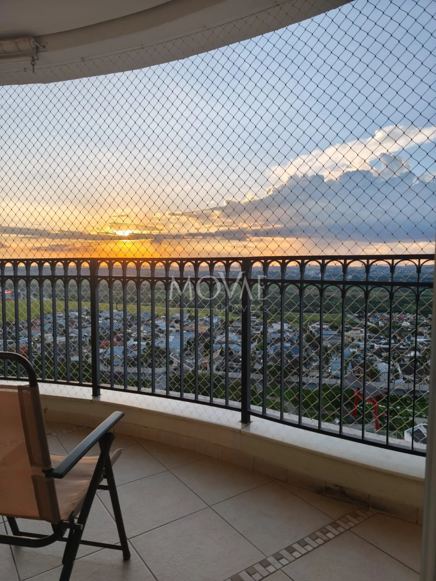 Pé direito alto com vista permanente para o pôr-do-sol.