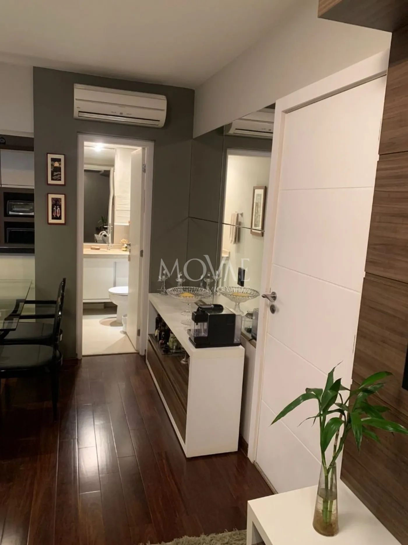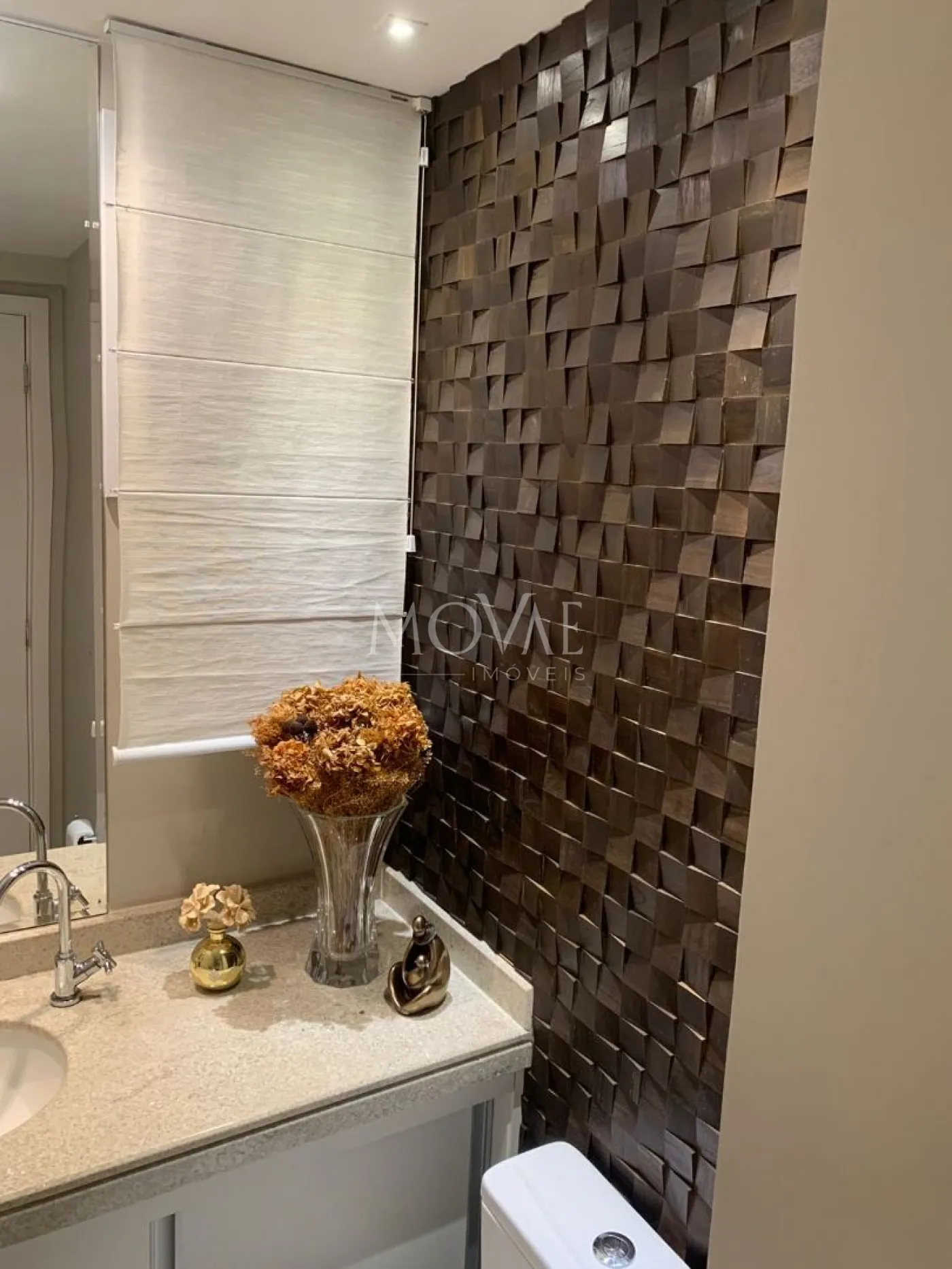 - Sacada fechada com vidro e cortina rolô, garantindo privacidade e bem-estar