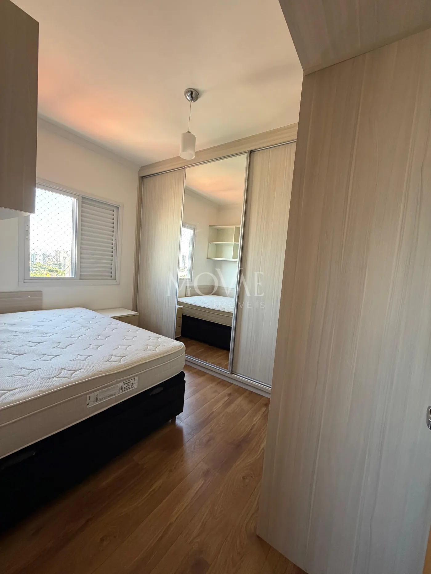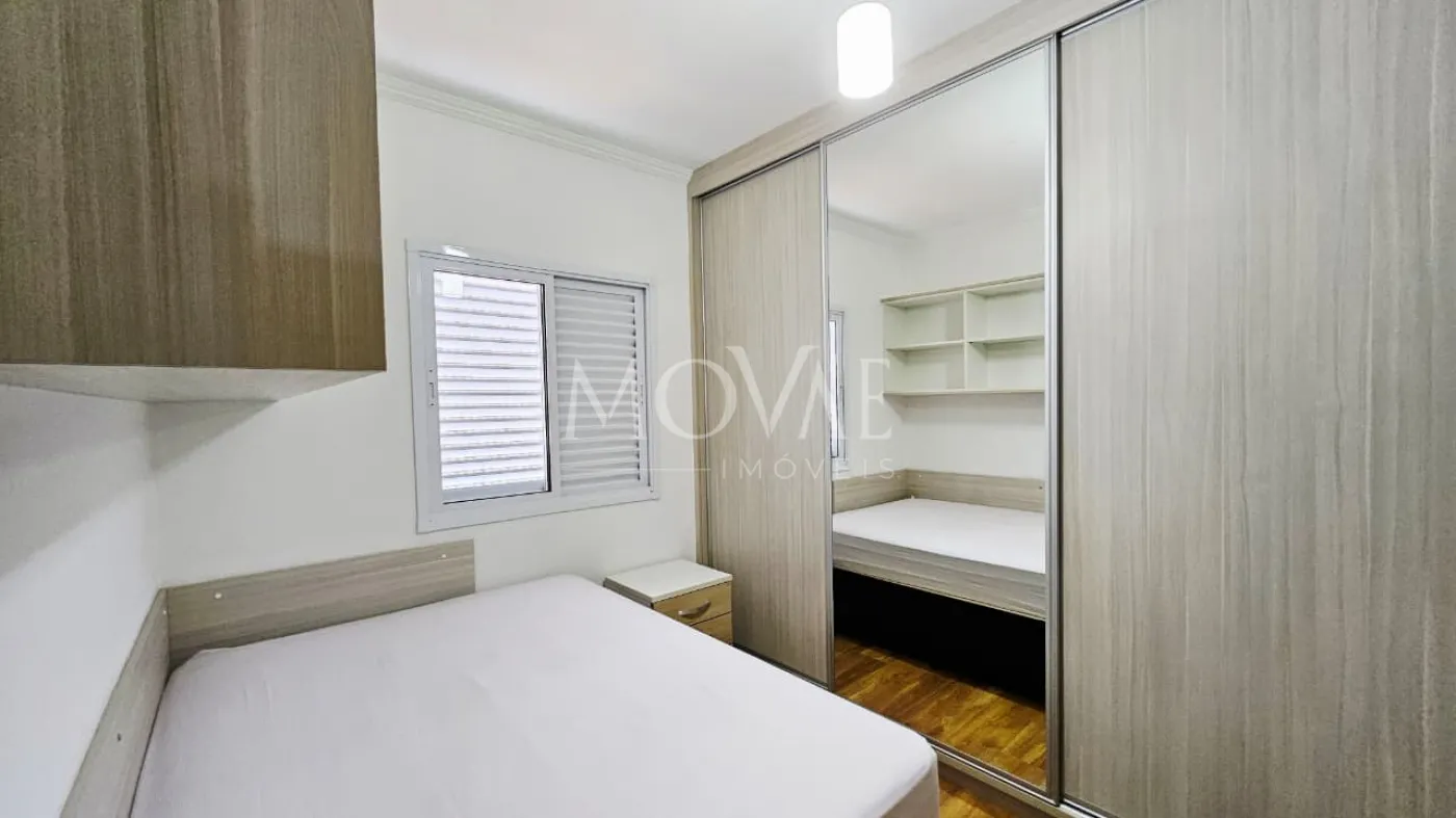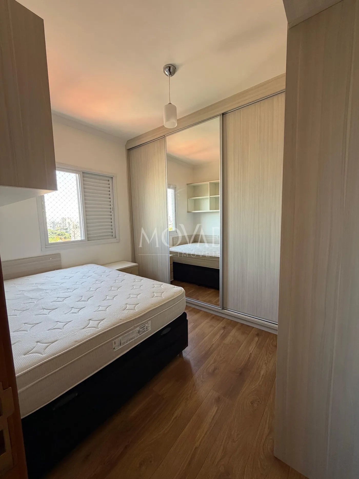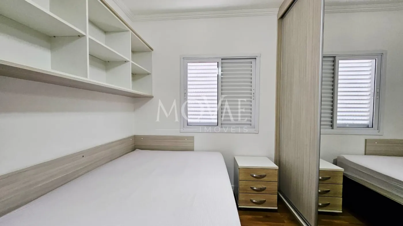 O imóvel possui 2 dormitórios, sendo 1 suíte. Um dos dormitórios conta com armários planejados, proporcionando melhor aproveitamento do espaço. A sala é ampla, ideal para dois ambientes, com ótima circulação e conforto.