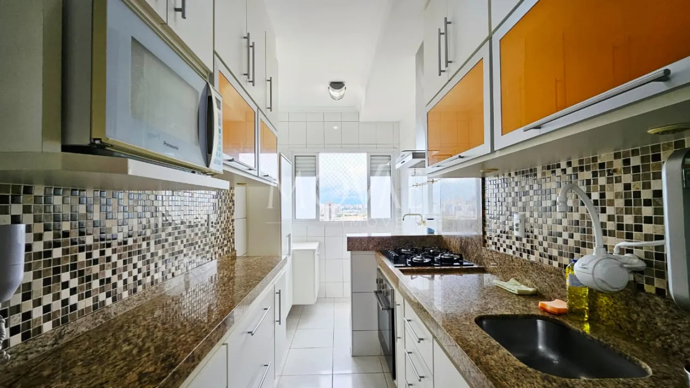 A cozinha é completa, equipada com armários planejados, fogão, coifa e forno, pronta para uso. O apartamento dispõe ainda de 1 vaga de garagem coberta .