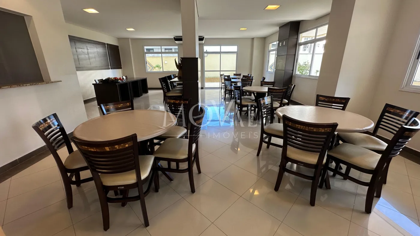 Playground, academia, salão de festas, área gourmet com churrasqueira, sala de jogos e quadra poliesportiva.
