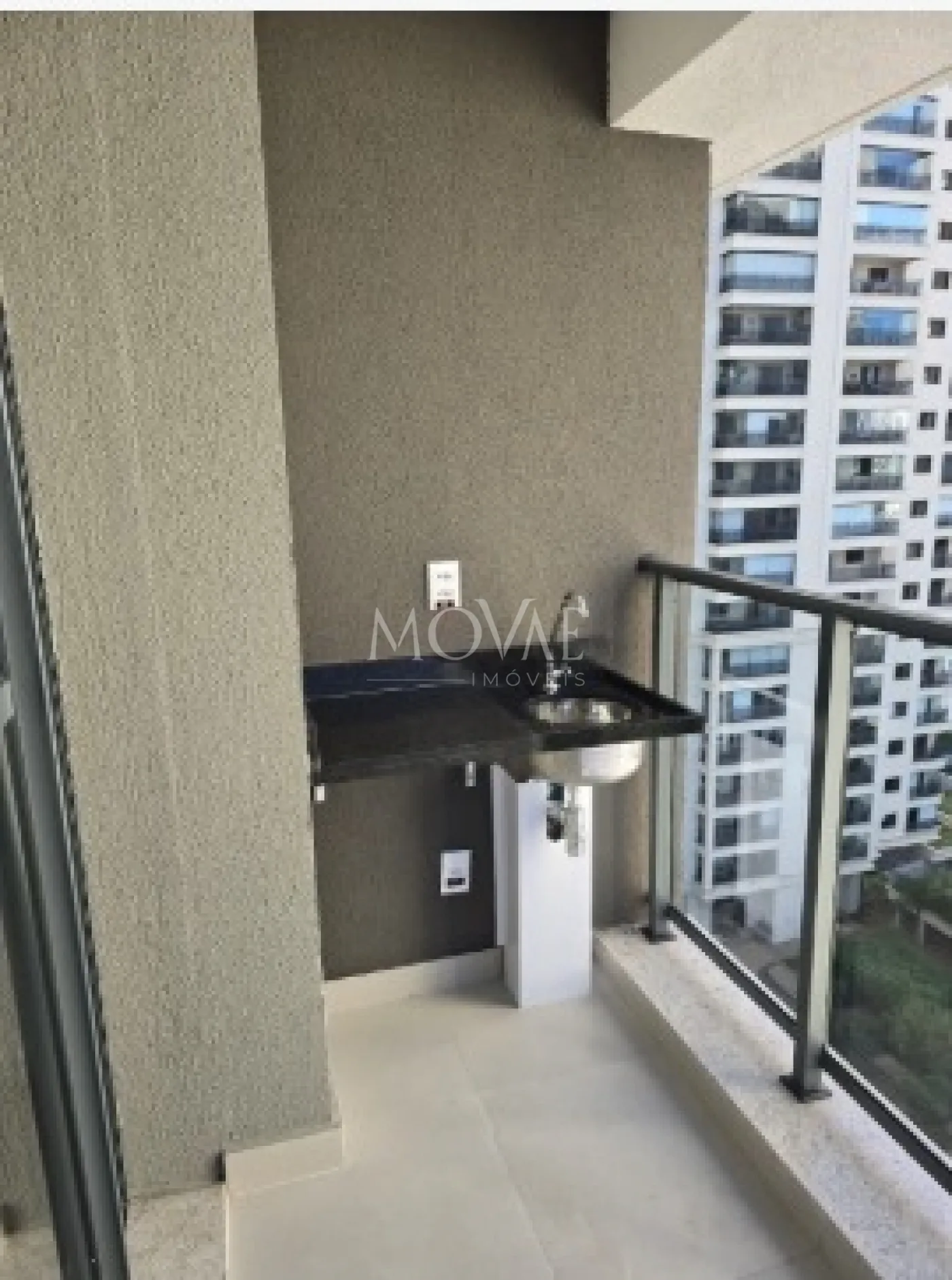 Varanda gourmet com fechamento em vidro, ideal para momentos de lazer e confraternização