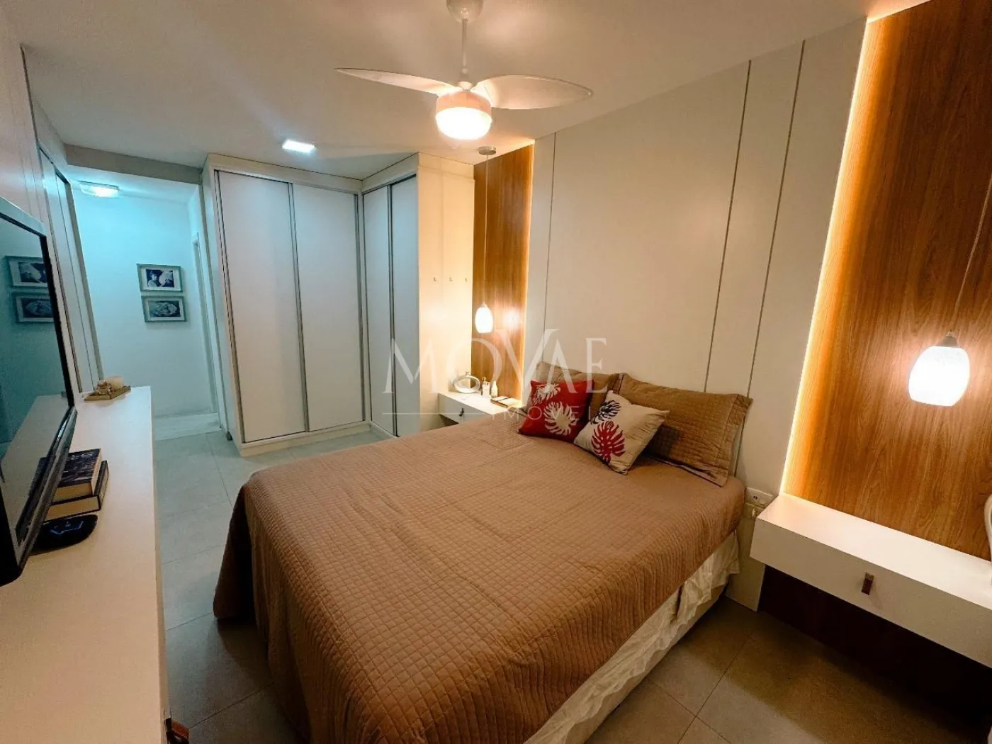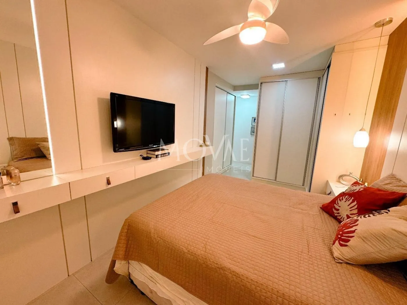 Móveis planejados na cozinha, quartos, dispensa e banheiros.