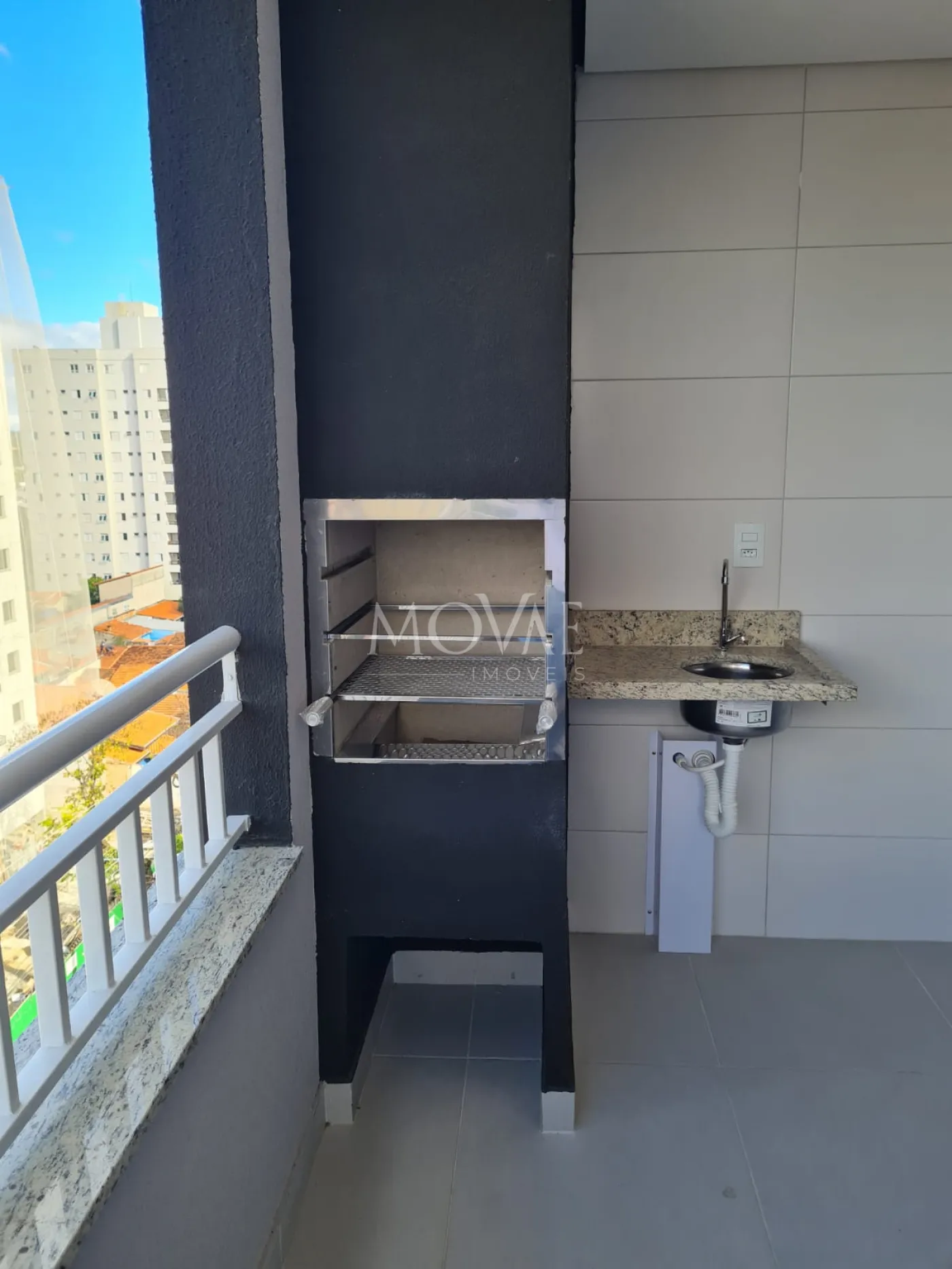 Varanda gourmet com churrasqueira à carvão
