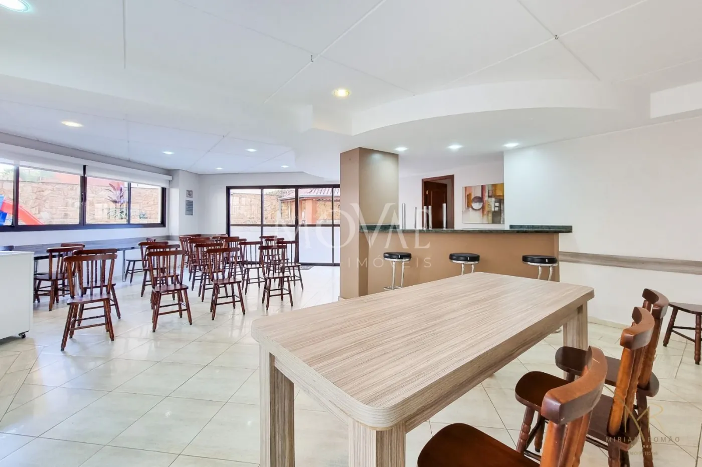 Área de lazer com salão de festas e de jogos para entretenimento.
