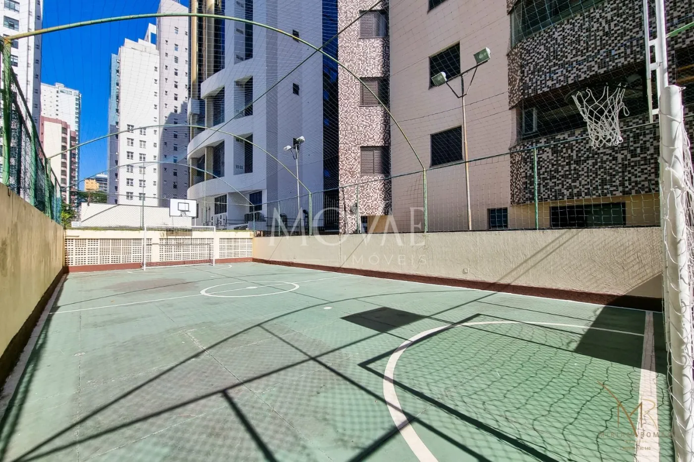 Quadra de futebol proporciona opções esportivas.