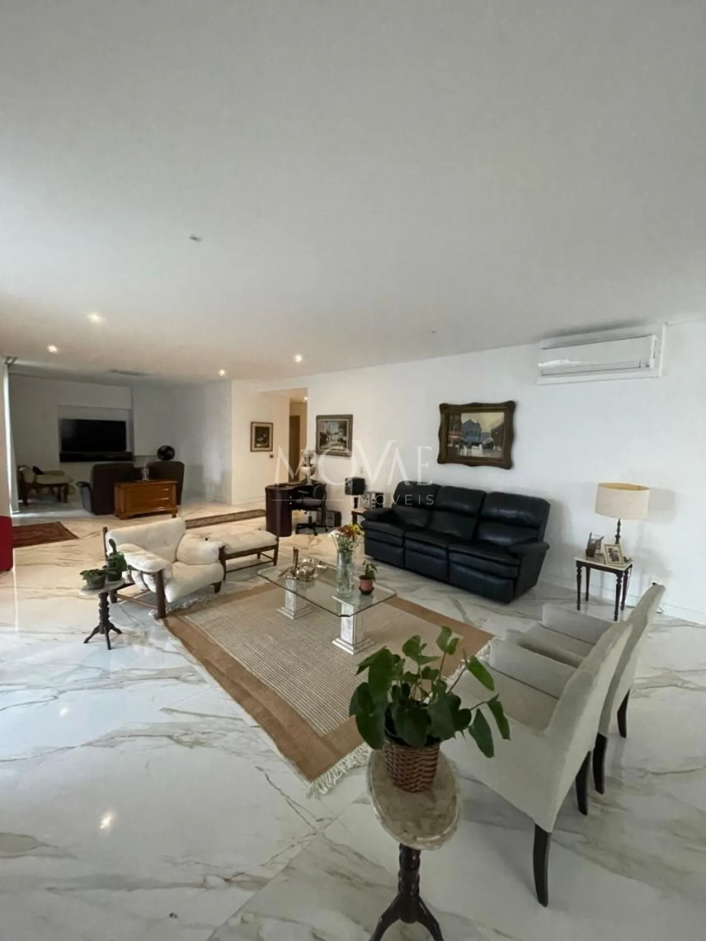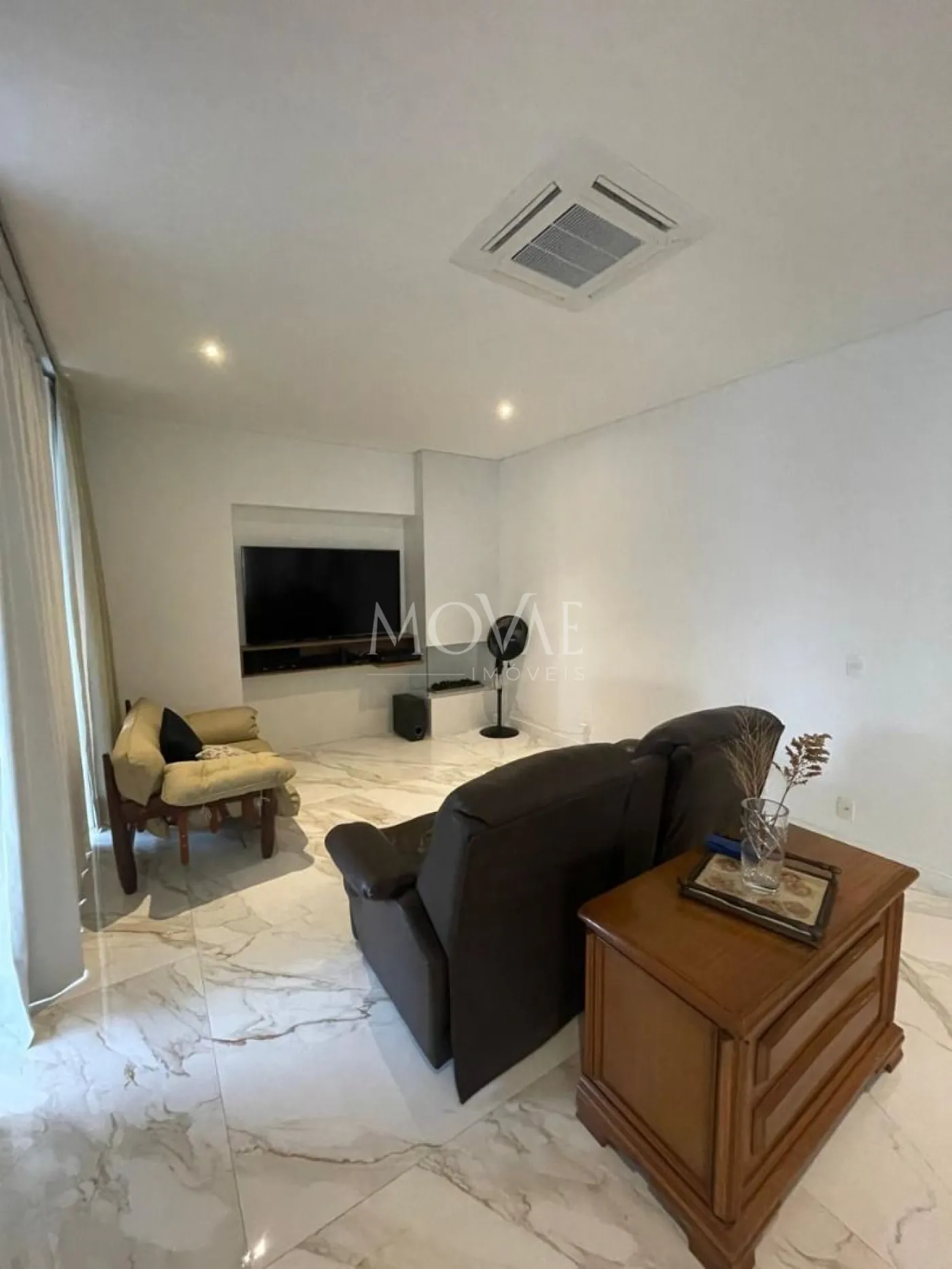 Sala ampla para 3 ambientes com lareira