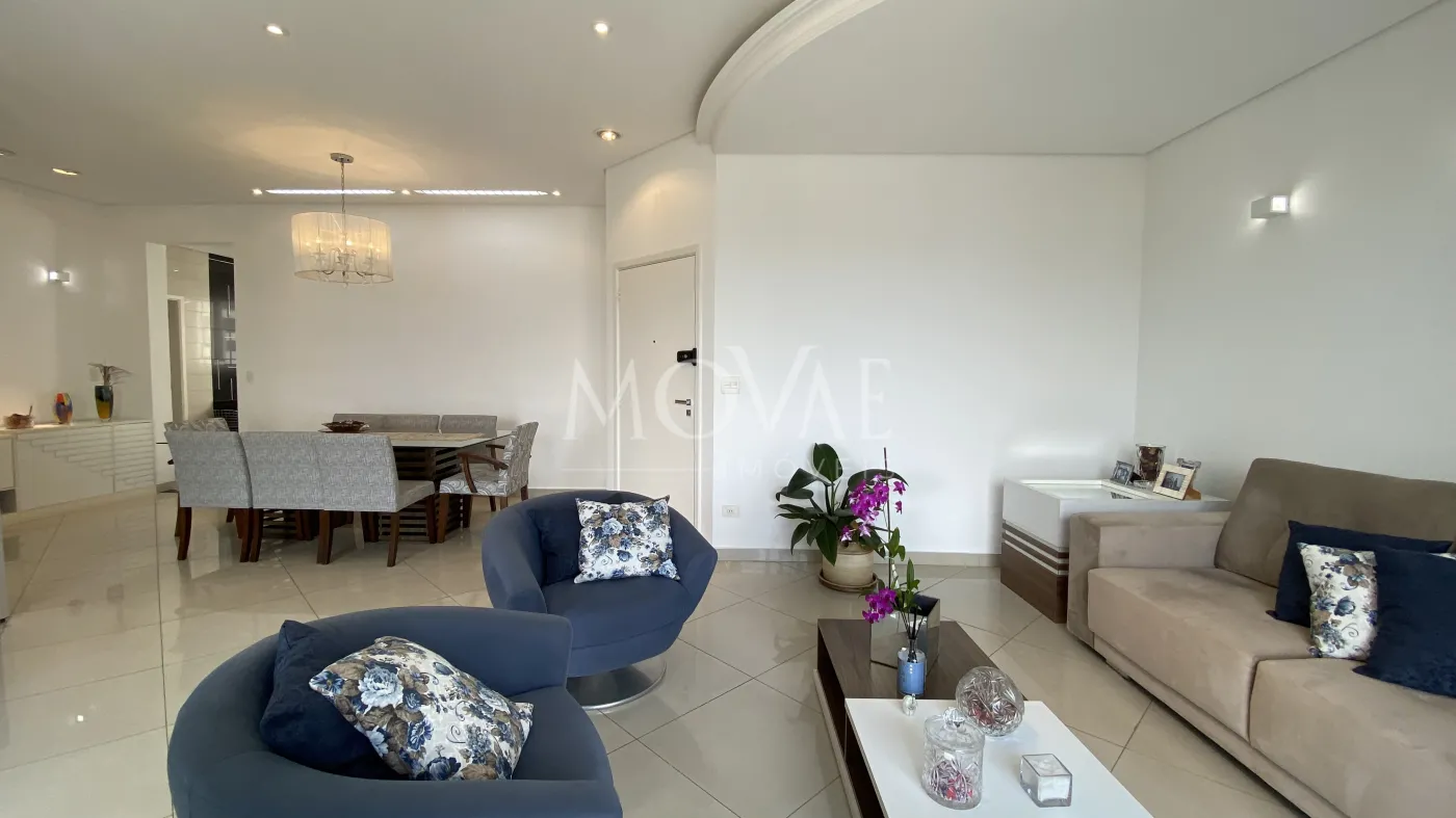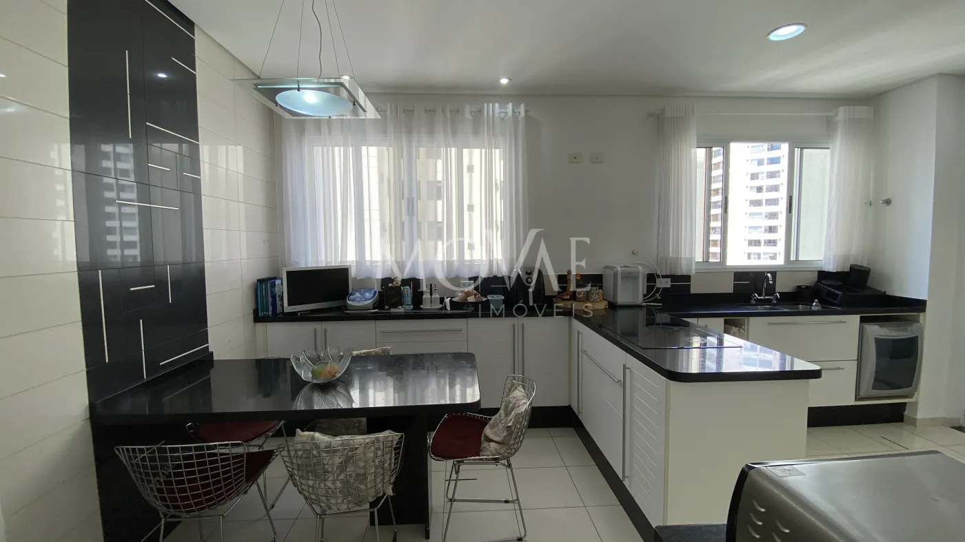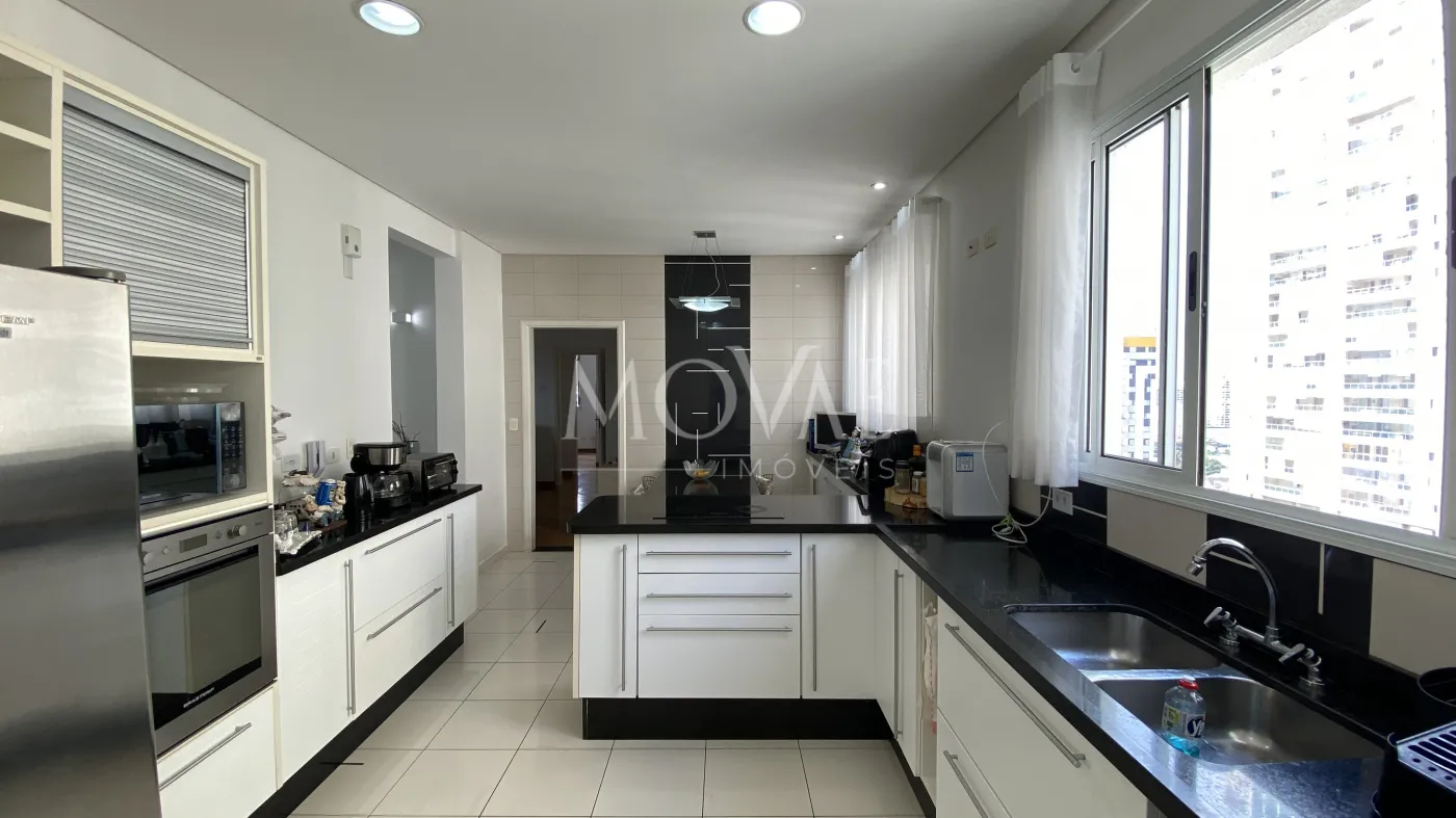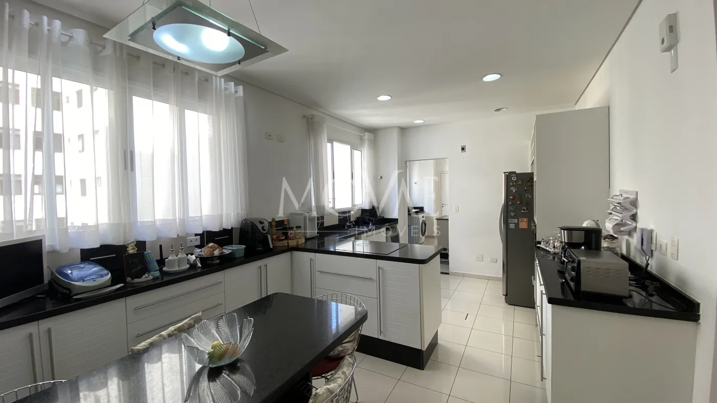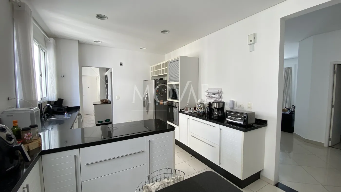 Lindo apartamento com 4 suítes, sendo 01 master, todas com armários, sala 02 ambientes, sala de tv, lavabo, varanda gourmet com cortina de vidro, ampla cozinha planejada com despensa, fogão embutido e coifa, área de serviço com armários, banheiro de empregada, piso porcelanato na área social e madeira nos dormitórios e corredor.