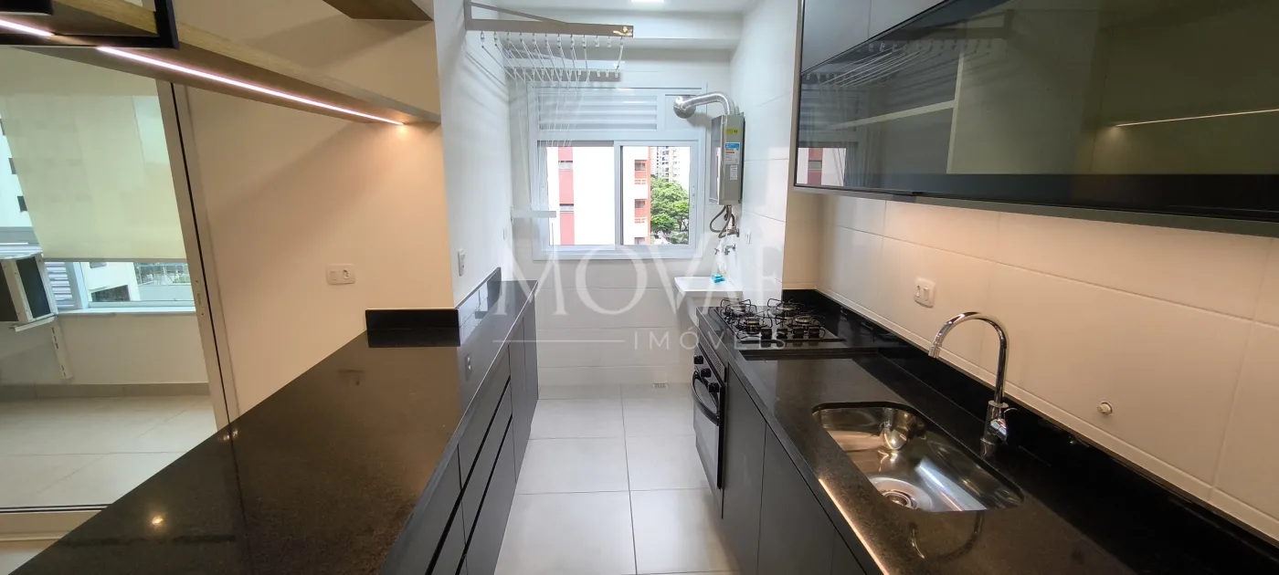 Aquecimento de água à gás com medidor individualizado. Piso em porcelanato, persiana blackout no quarto com controle remoto. Prédio novo com 10 andares, 6 aptos por andar, 2 elevadores com sistema de reconhecimento facial, torre única.