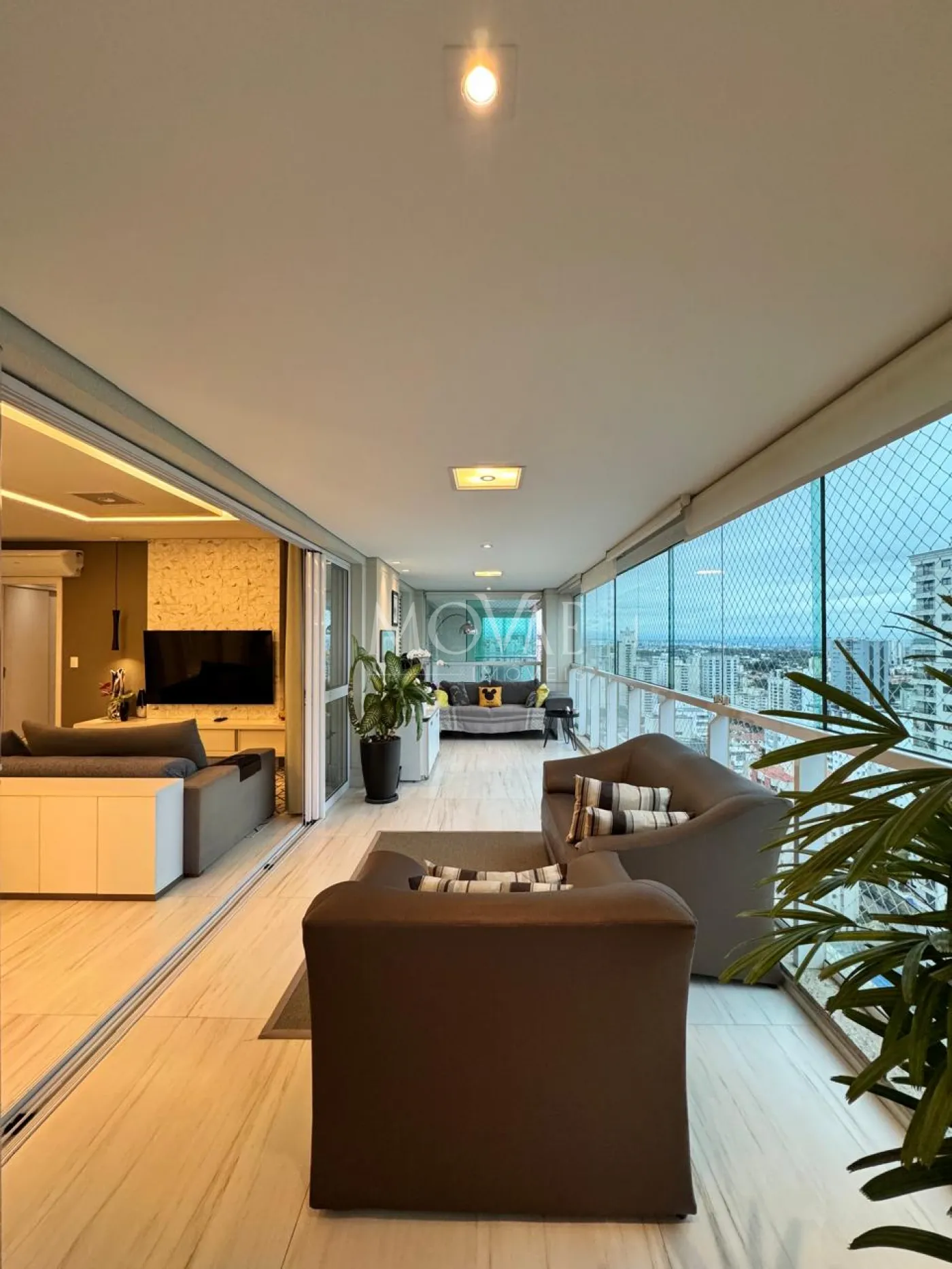 Sacada espaçosa e integrada à suíte com fechamento
