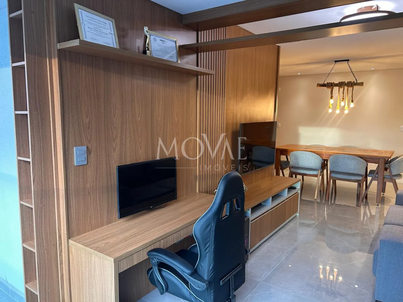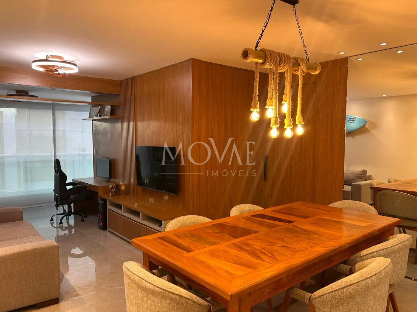 - Living amplo com sala de TV e sala de jantar