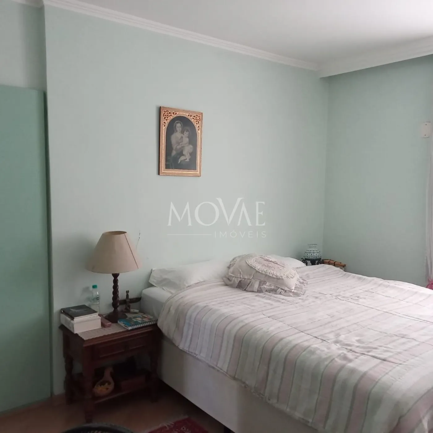 Pé direito alto e quartos grandes que comportam cama king size.
