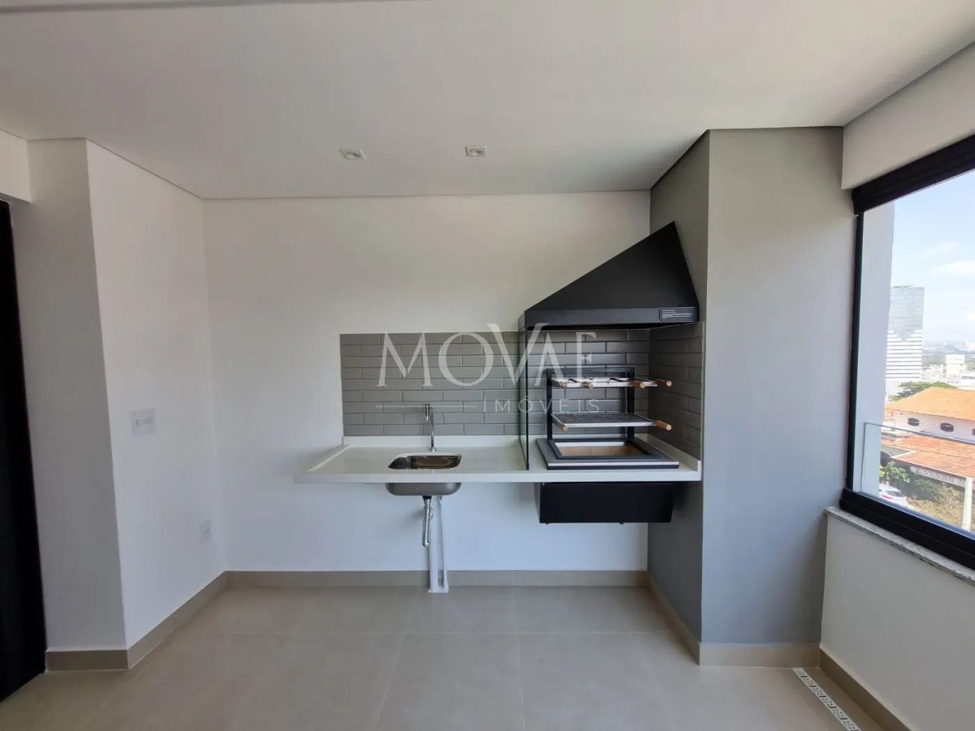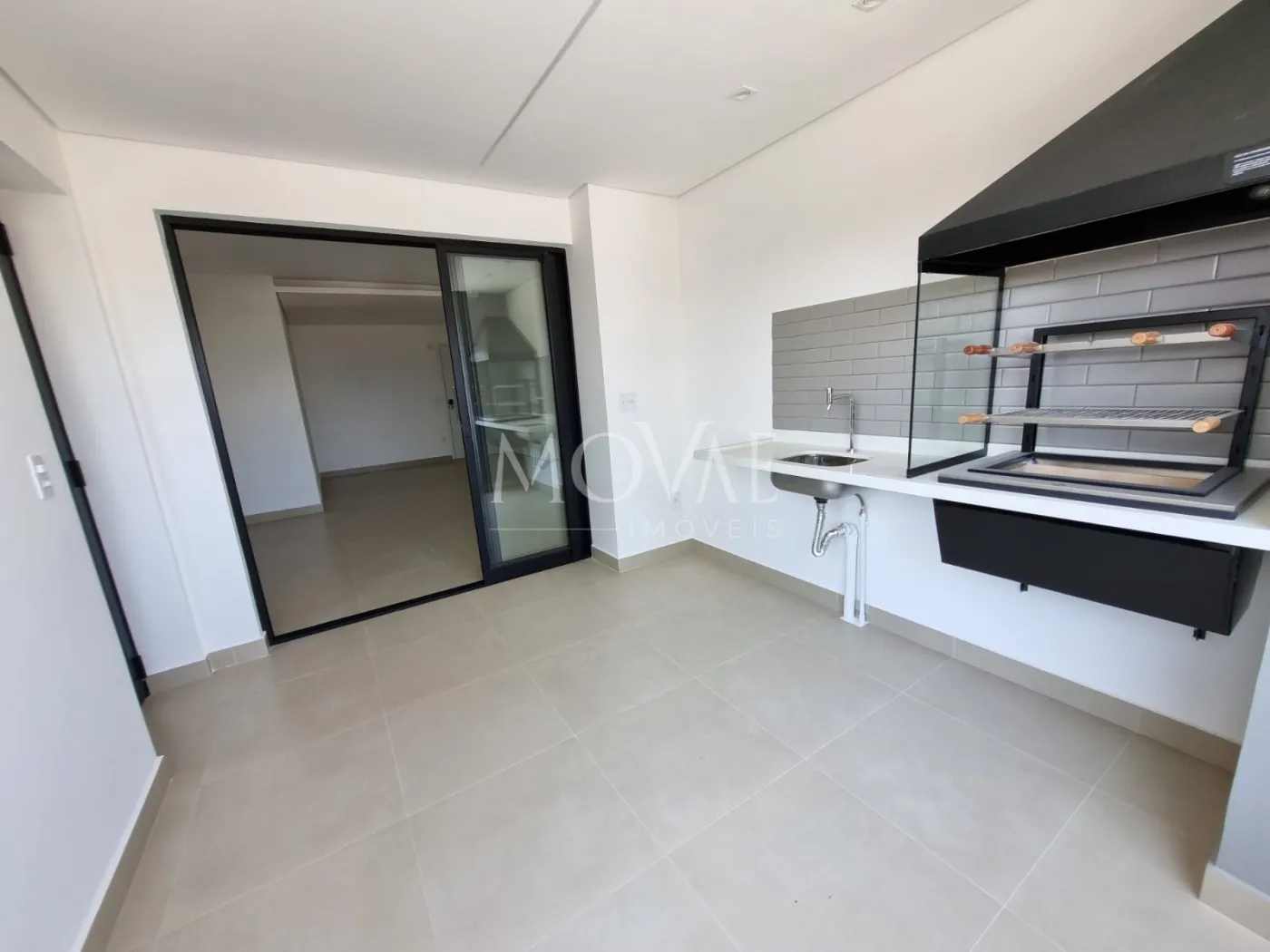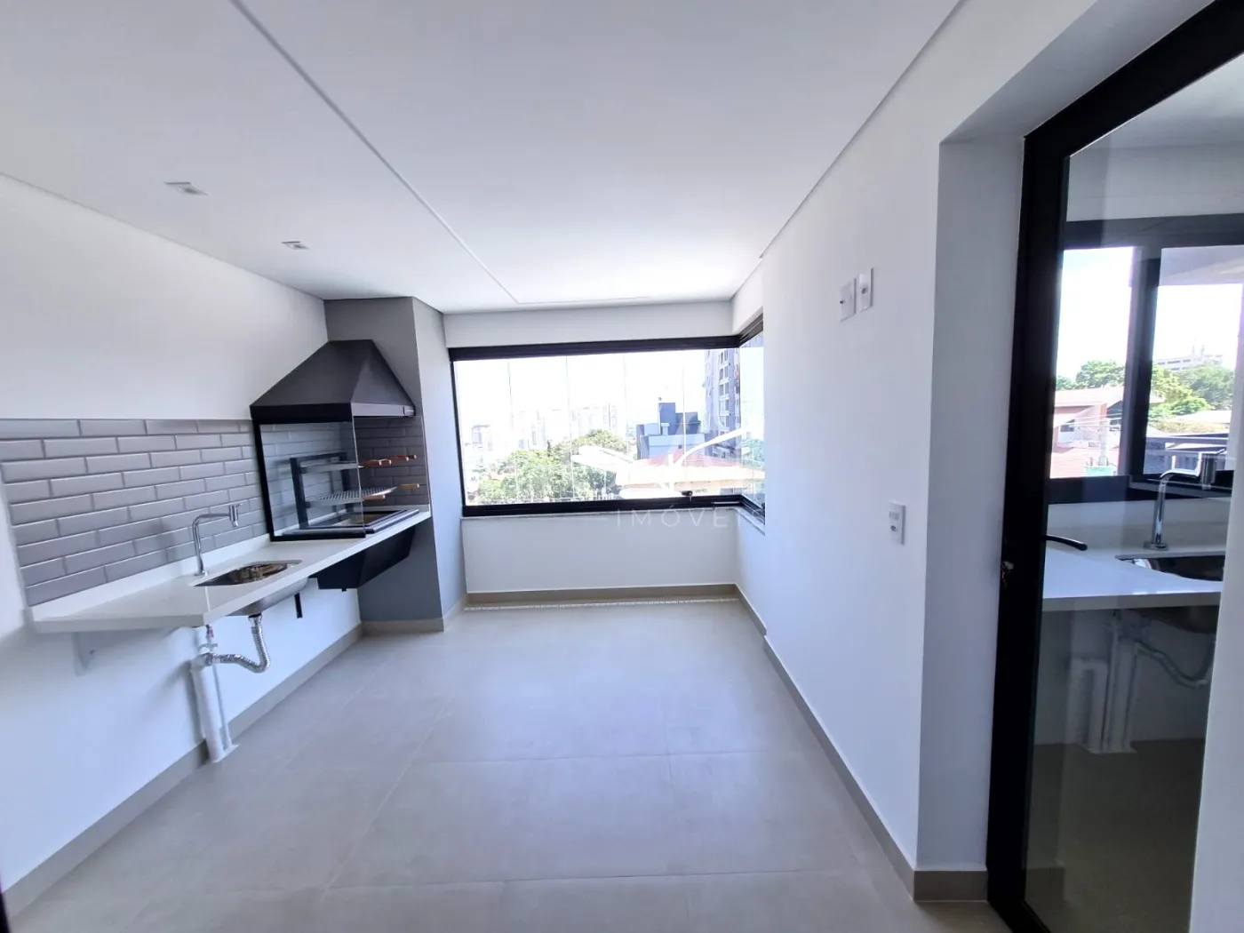 Varanda com Churrasqueira e fechada com cortina de vidro