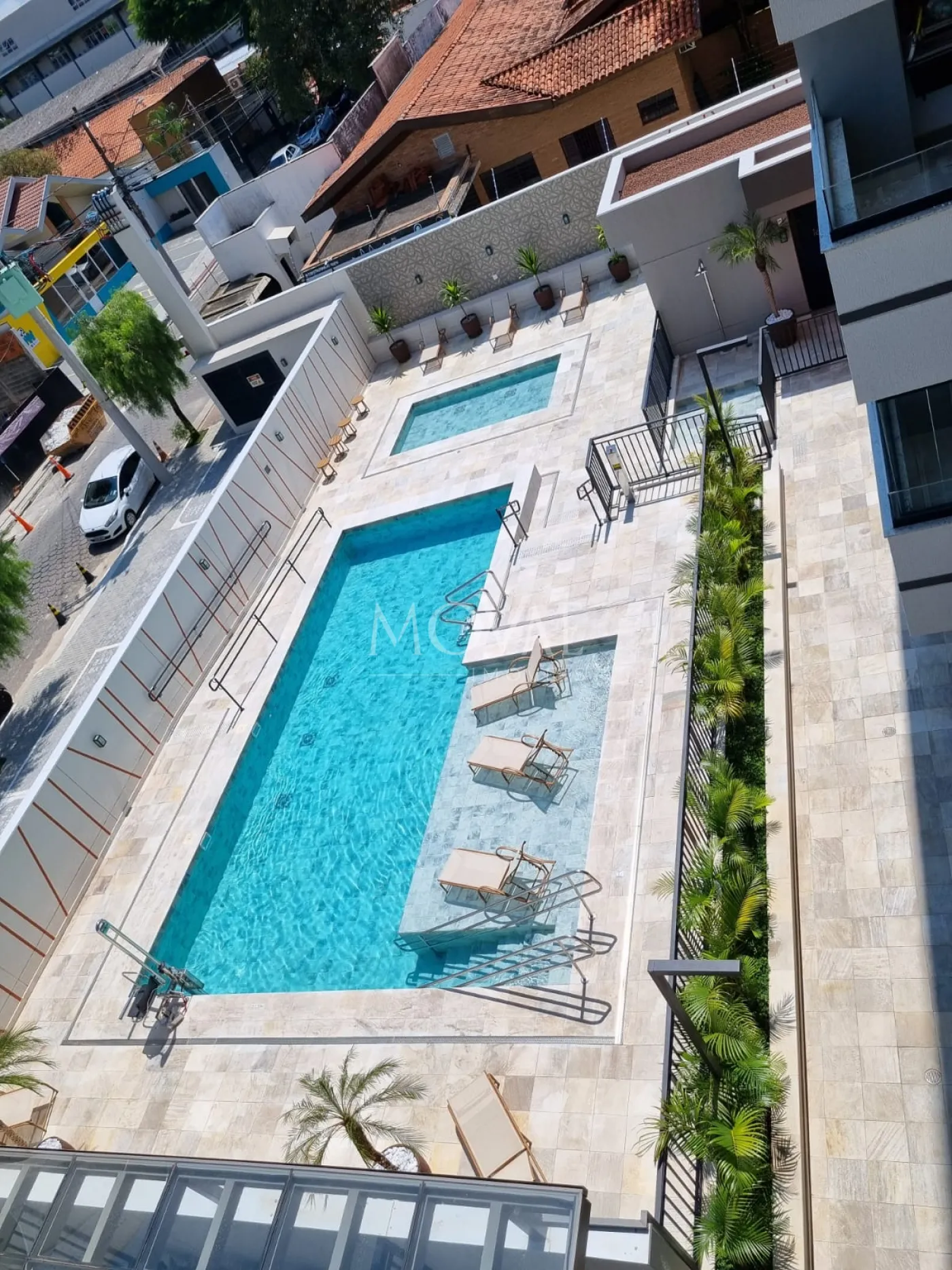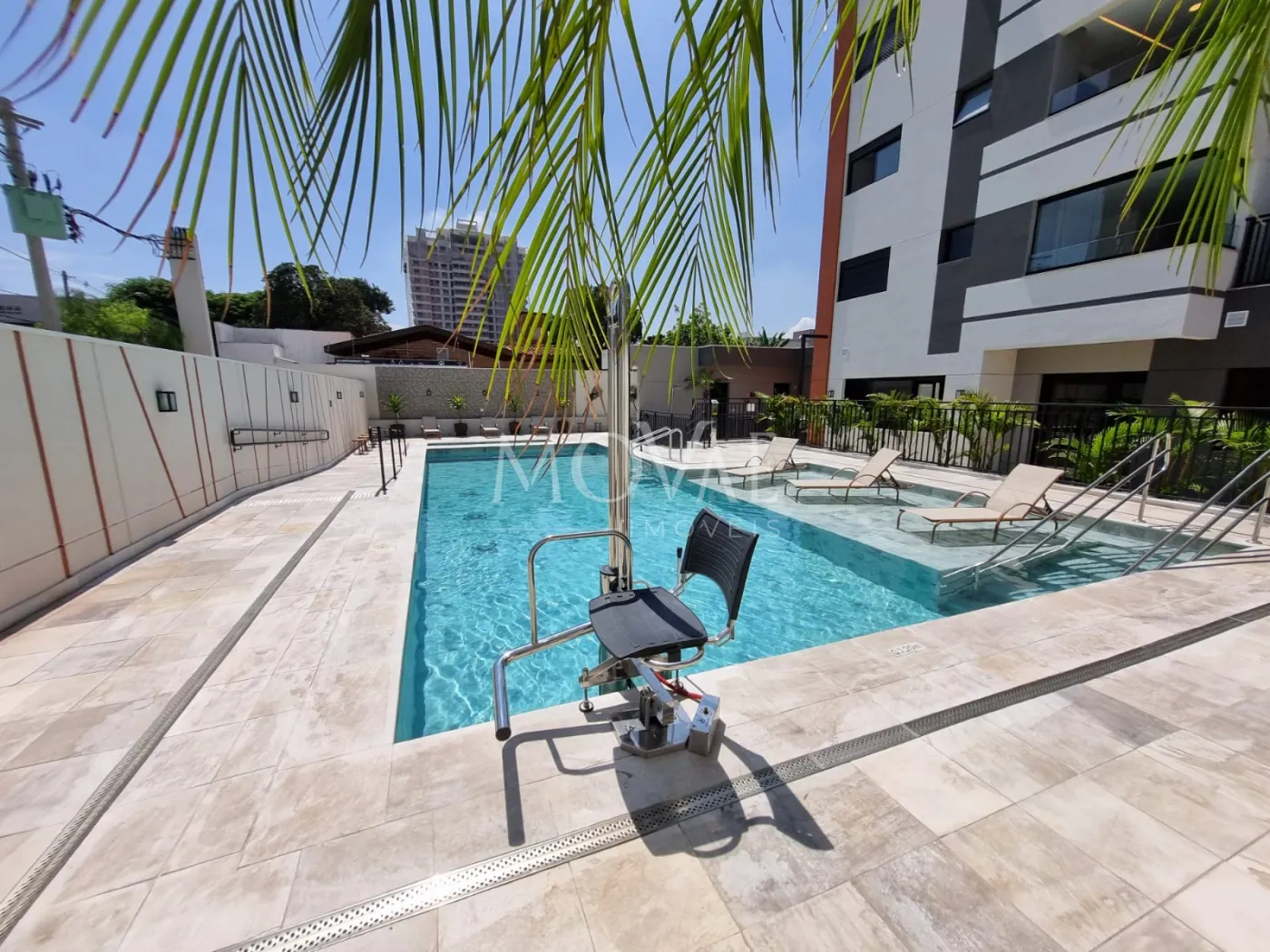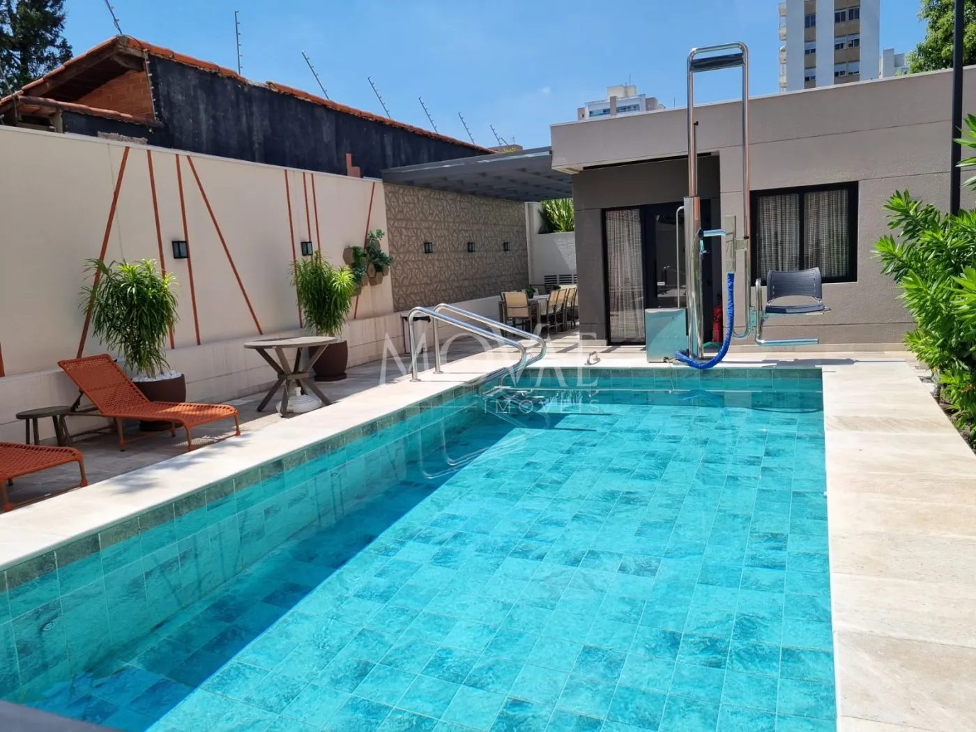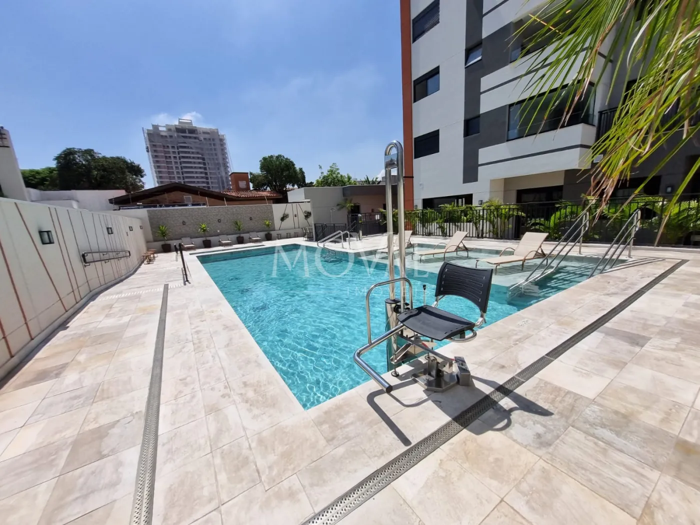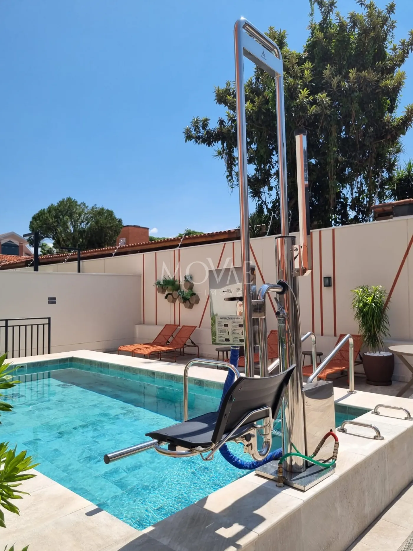 Piscina adulto e infantil aquecida com acesso a cadeirantes dentro da piscina