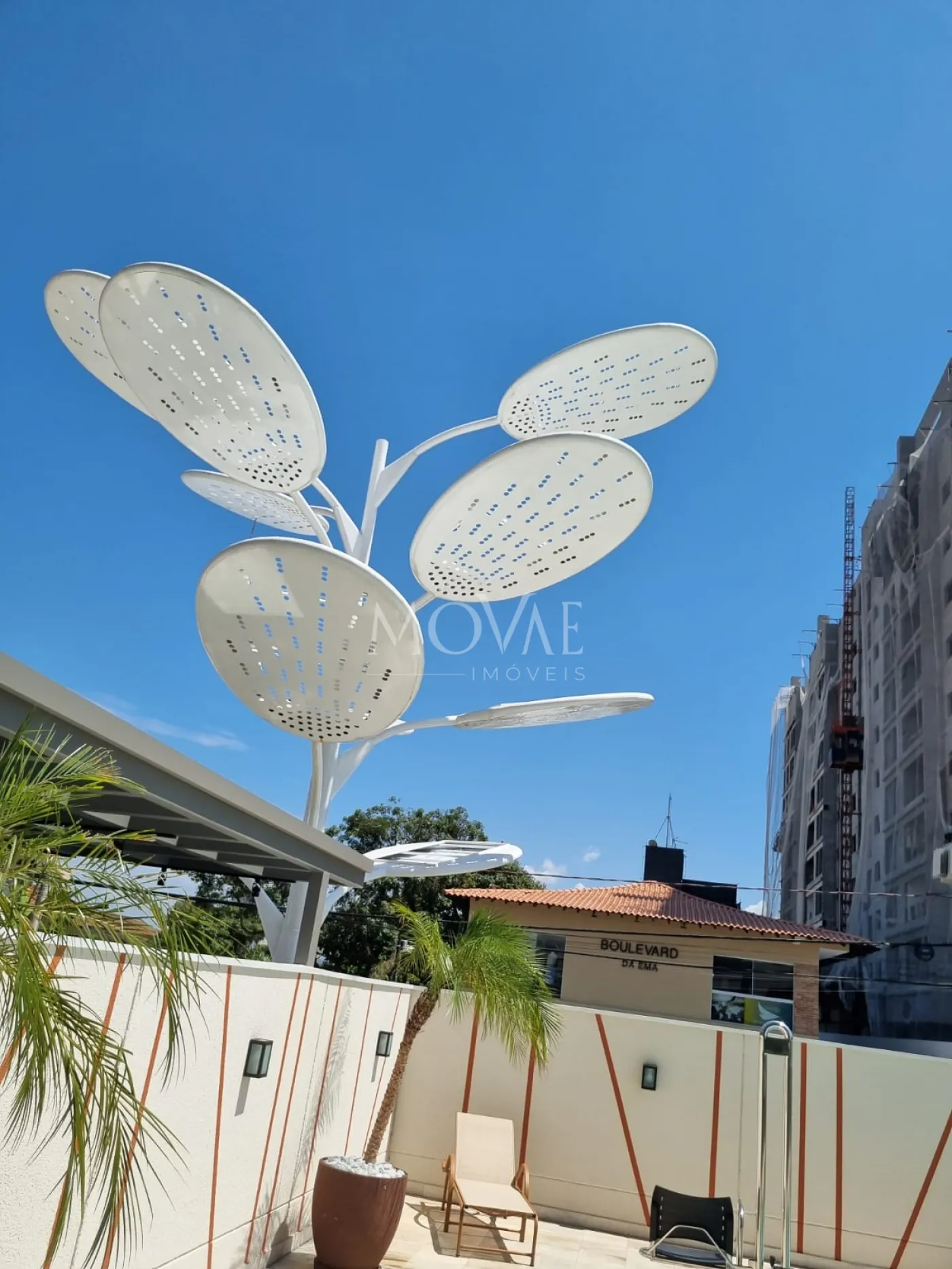 Energia solar que alimenta o aquecimento das piscinas e o prédio