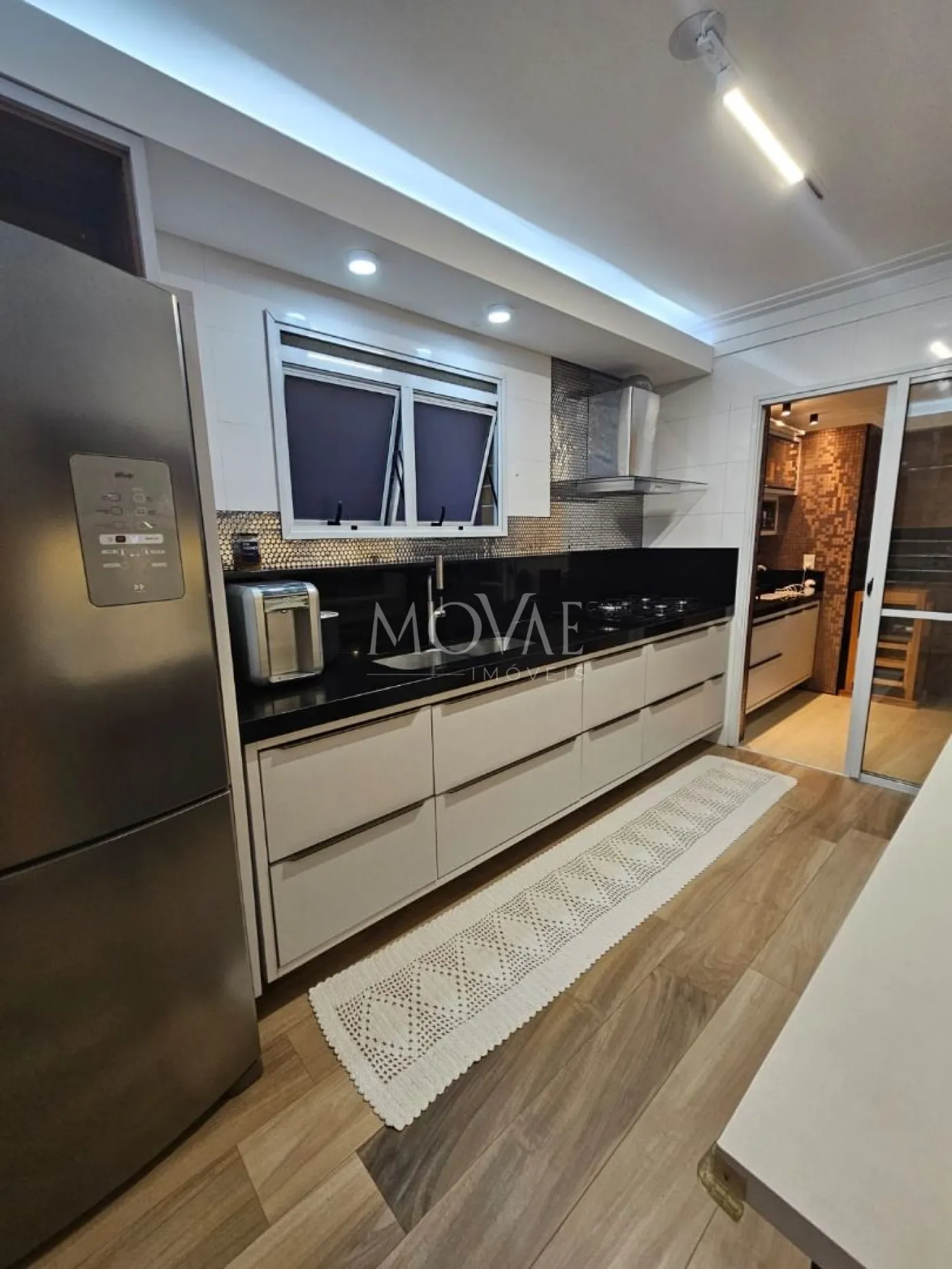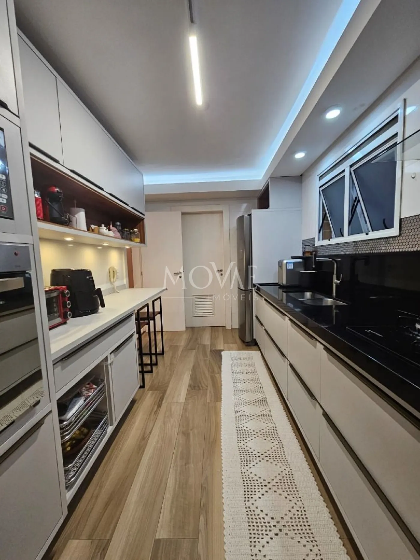 Cozinha e área de serviço com móveis planejados