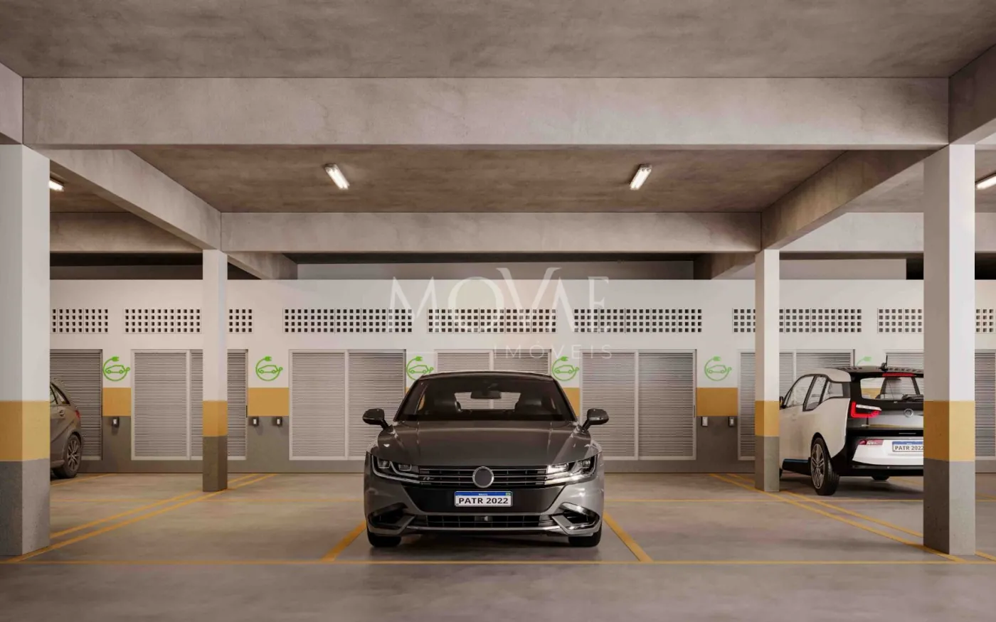 2 vagas de garagem cobertas, sendo uma equipada para carro elétrico