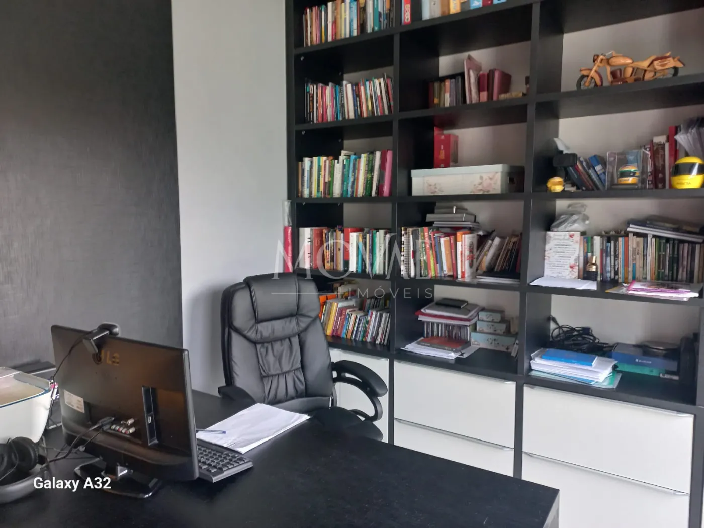 escritório com prateleiras e planejados