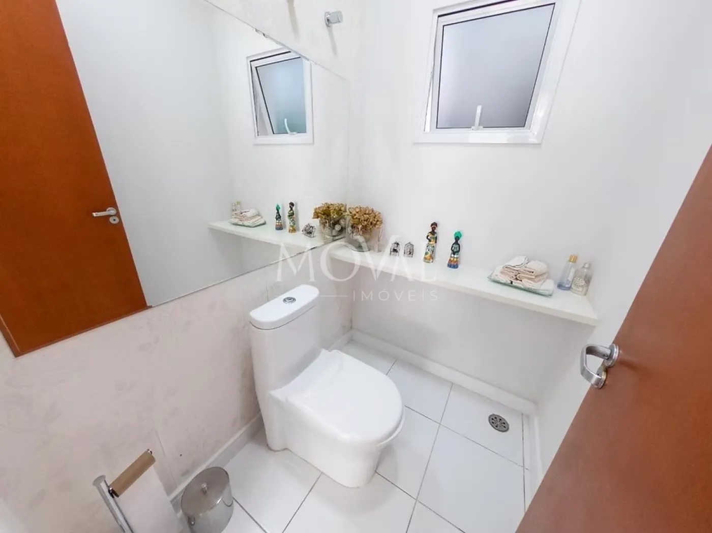 Banheiro de apoio na área externa, pensado para atender a piscina e espaço gourmet.