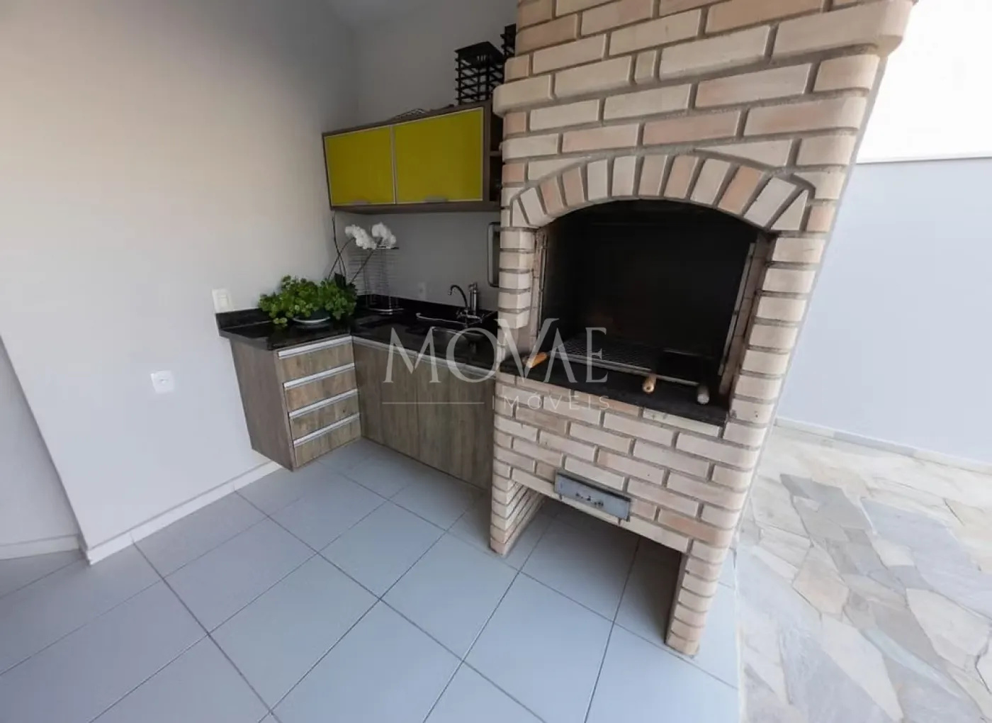 Área gourmet completa, com churrasqueira, bancada e espaço para instalação de chopeira ou cooktop.