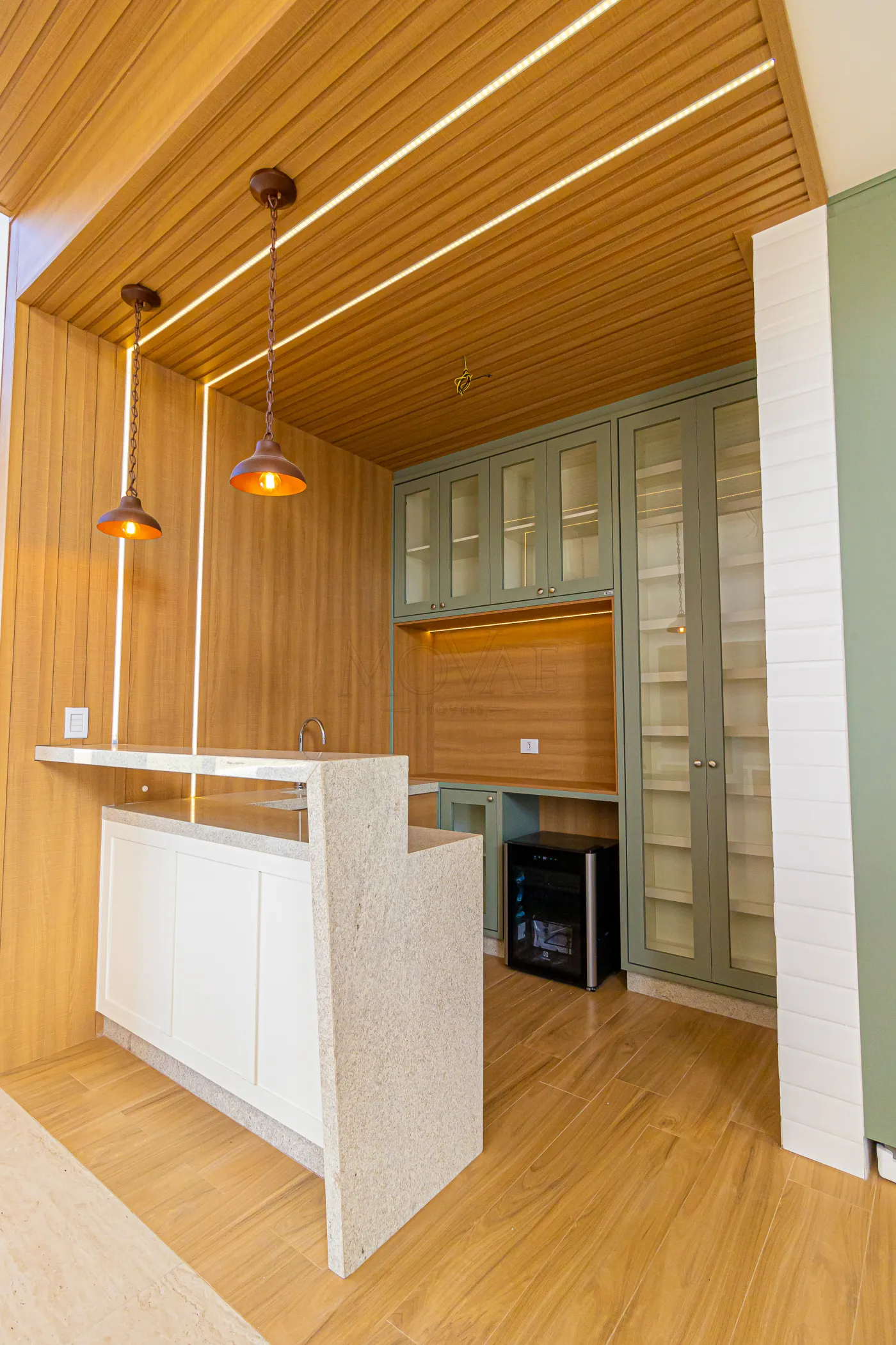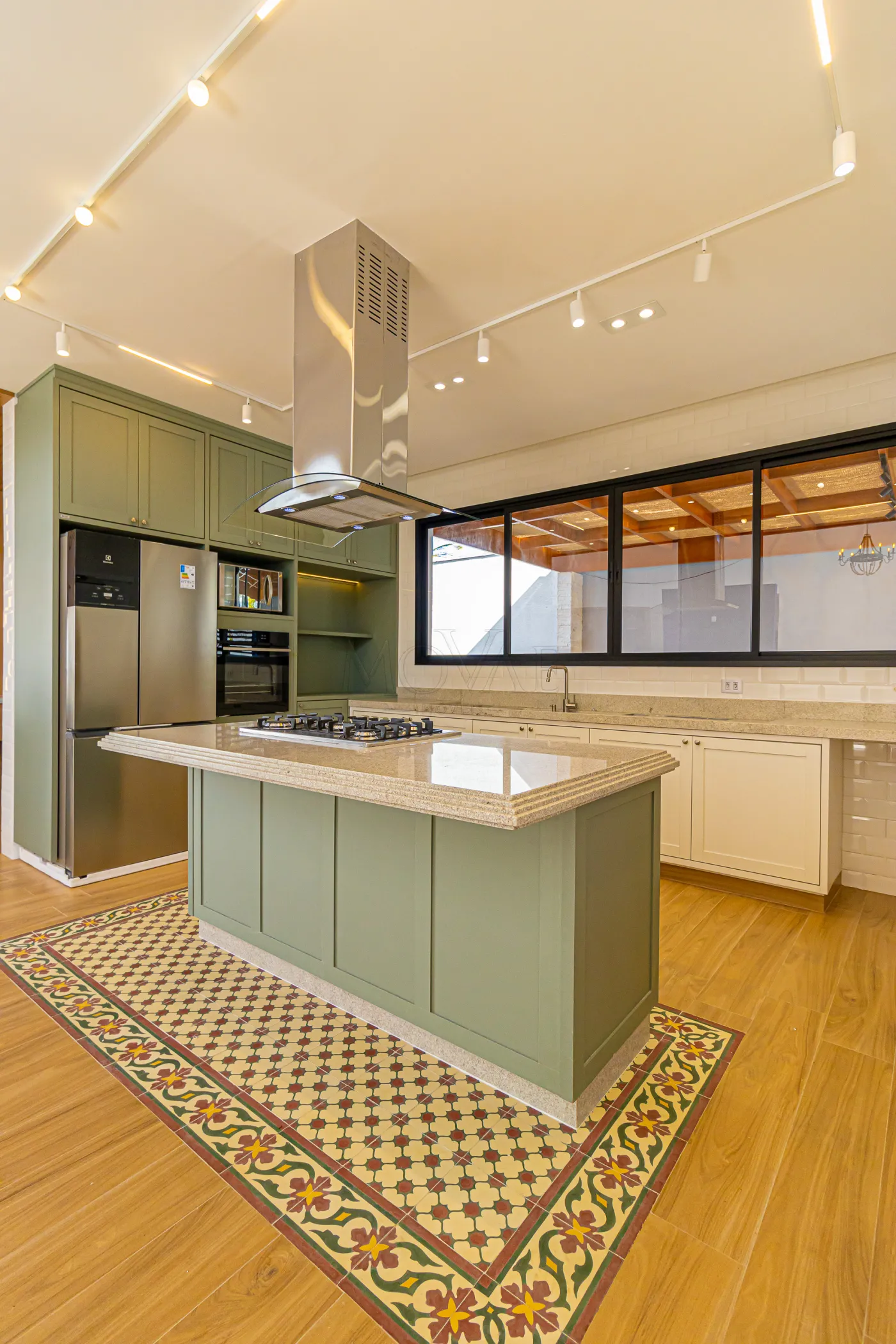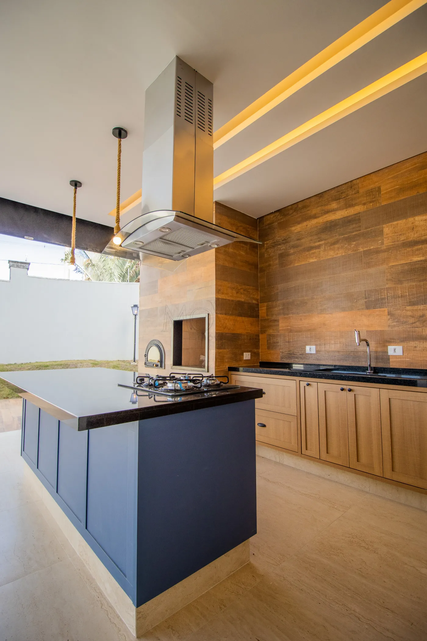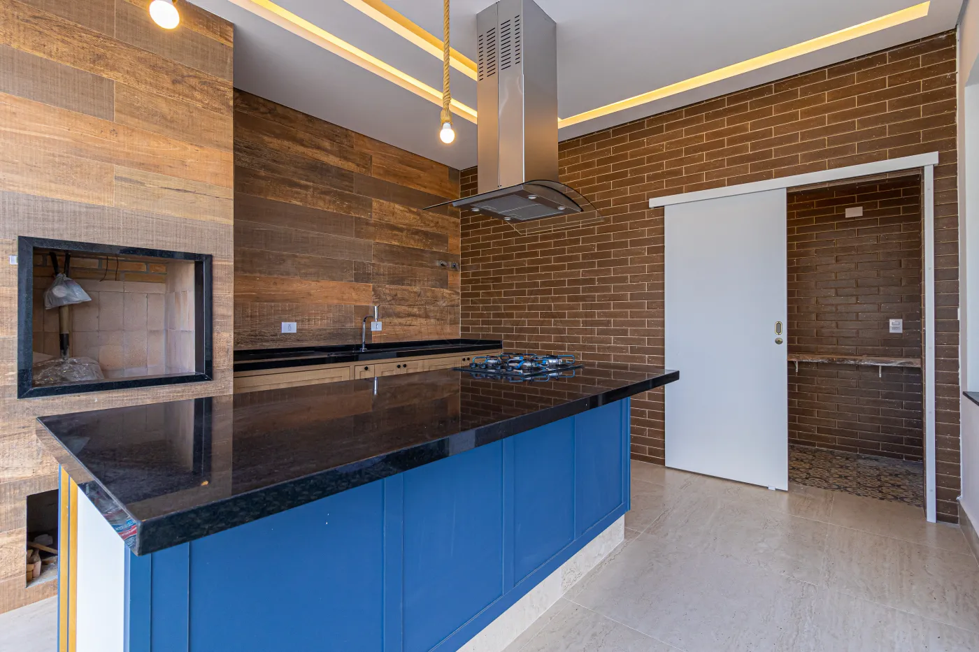 - Cozinha completa, geladeira, forno, fogão cooktop, coifa e iluminação diferenciada.