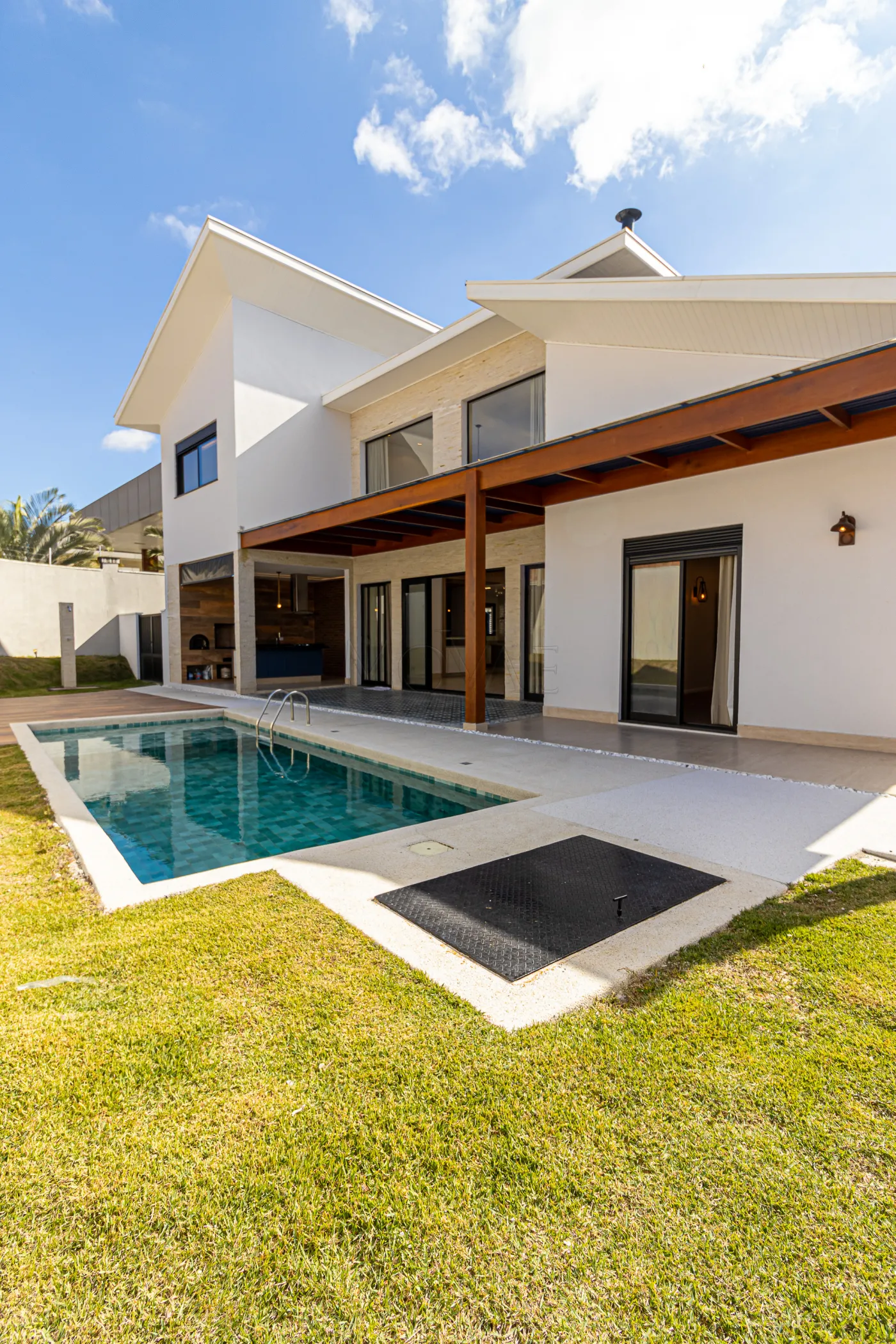 - Área gourmet ampla com armários, coifa e fogão cooktop instalado, além de uma bela e ampla piscina.