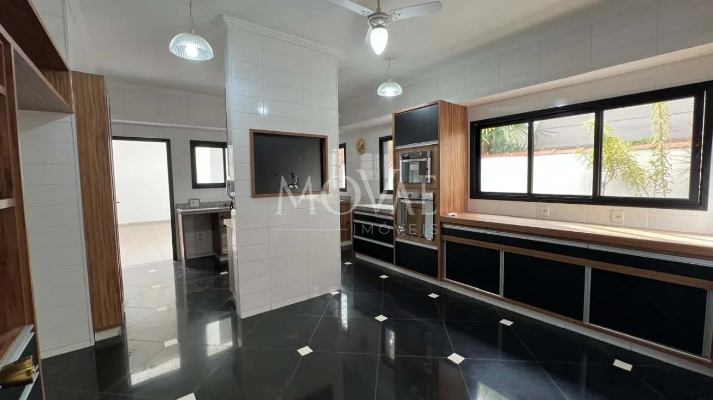 Espaço Gourmet: Cozinha ampla com ilha, integrada a um convidativo espaço gourmet equipado com churrasqueira e fogão a lenha.