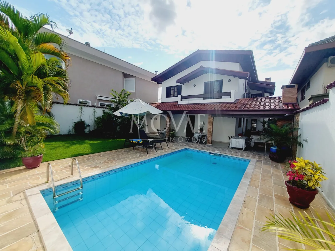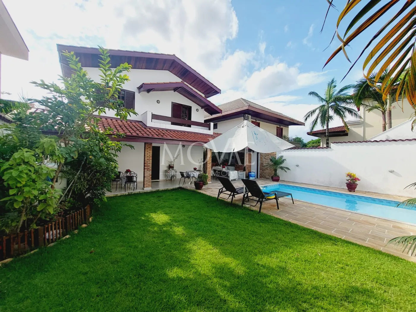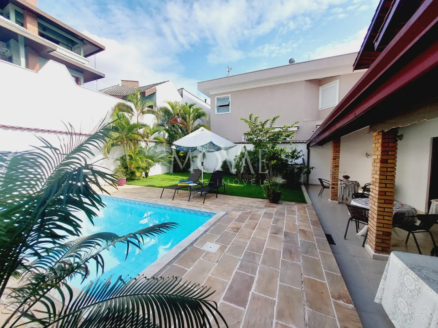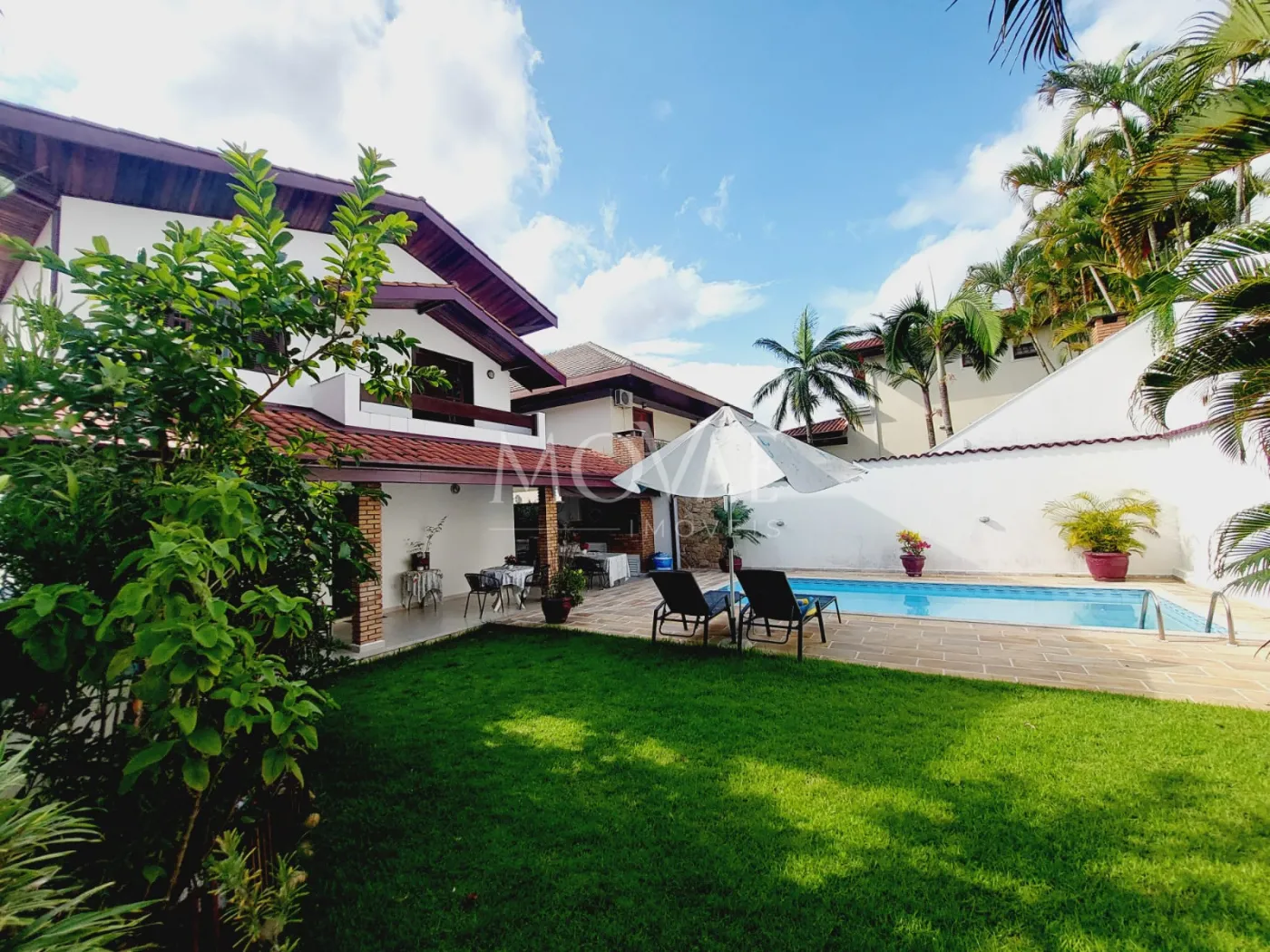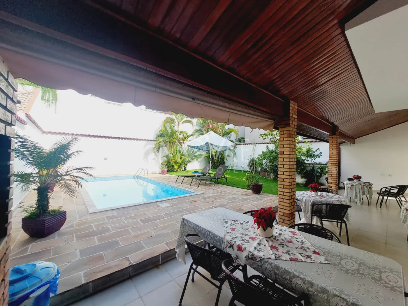 Varanda ampla integrada ao quintal gramado com paisagismo perfeito para receber amigos e família