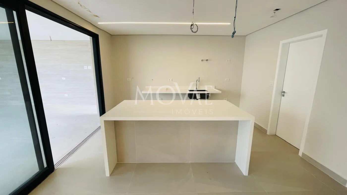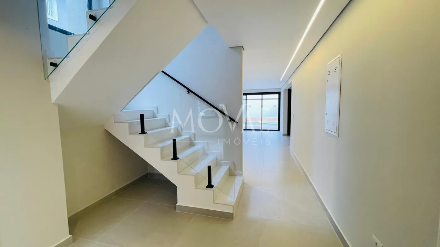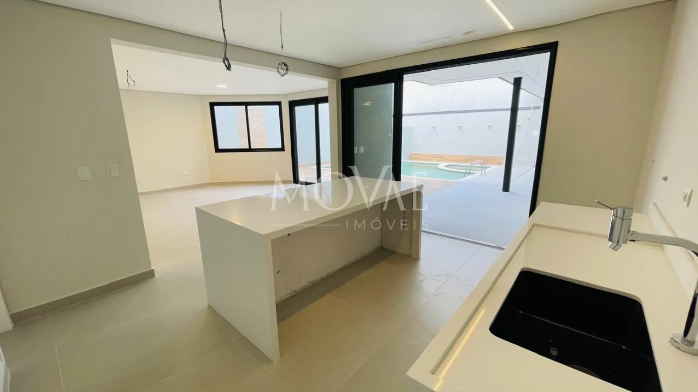 No pavimento térreo, conta com uma suíte completa, perfeita para hóspedes ou para quem necessita de acessibilidade, além de escritório reservado. A área social é composta por sala ampla com integração à cozinha, proporcionando modernidade e funcionalidade. A cozinha possui ilha central e conexão direta com a área gourmet, criando um espaço ideal para receber convidados. A área externa dispõe de piscina, garantindo lazer e privacidade.