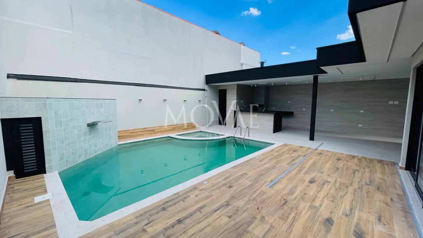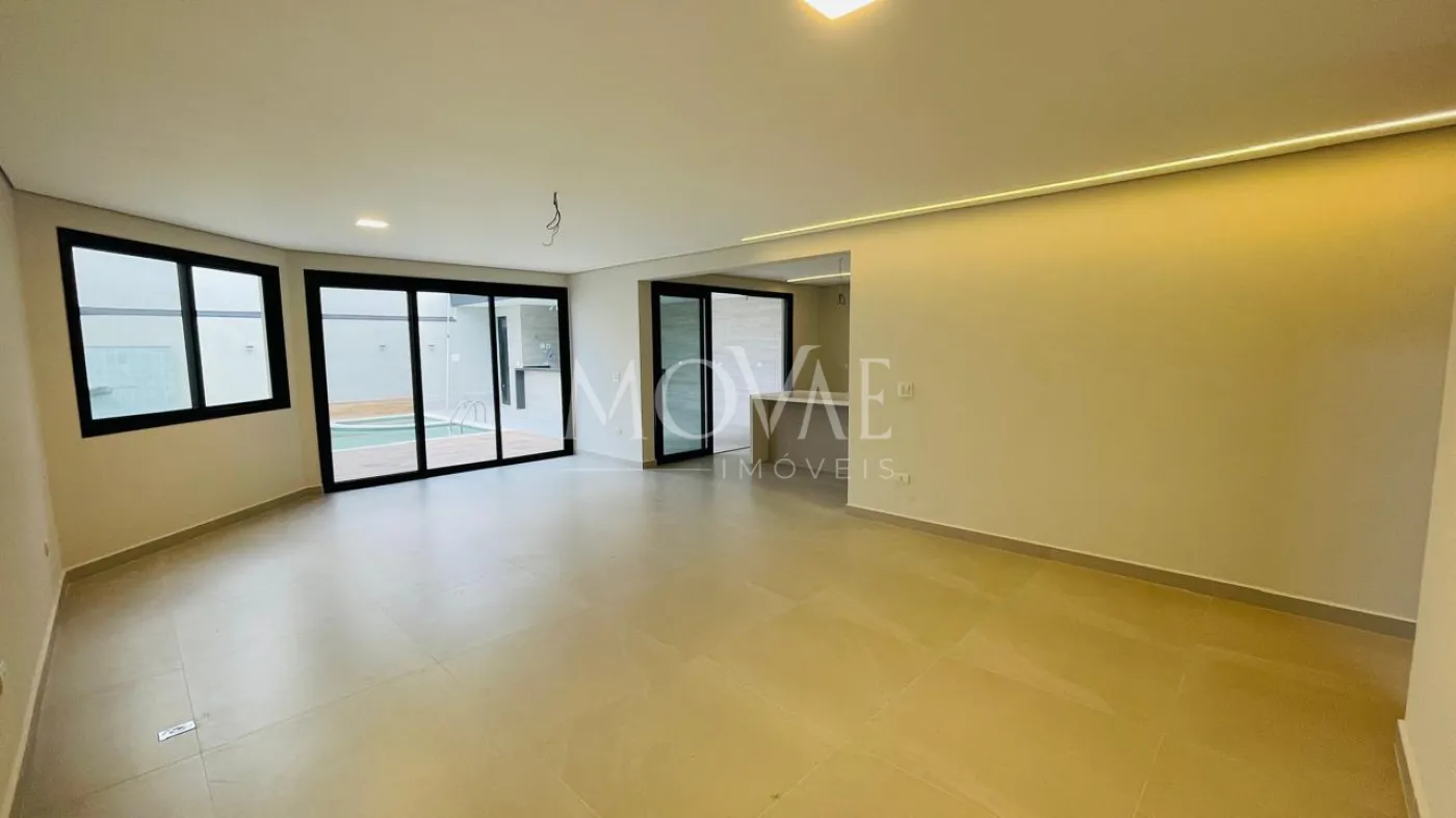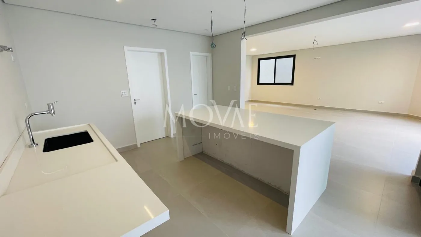 No pavimento térreo, conta com uma suíte completa, perfeita para hóspedes ou para quem necessita de acessibilidade, além de escritório reservado. A área social é composta por sala ampla com integração à cozinha, proporcionando modernidade e funcionalidade. A cozinha possui ilha central e conexão direta com a área gourmet, criando um espaço ideal para receber convidados. A área externa dispõe de piscina, garantindo lazer e privacidade.