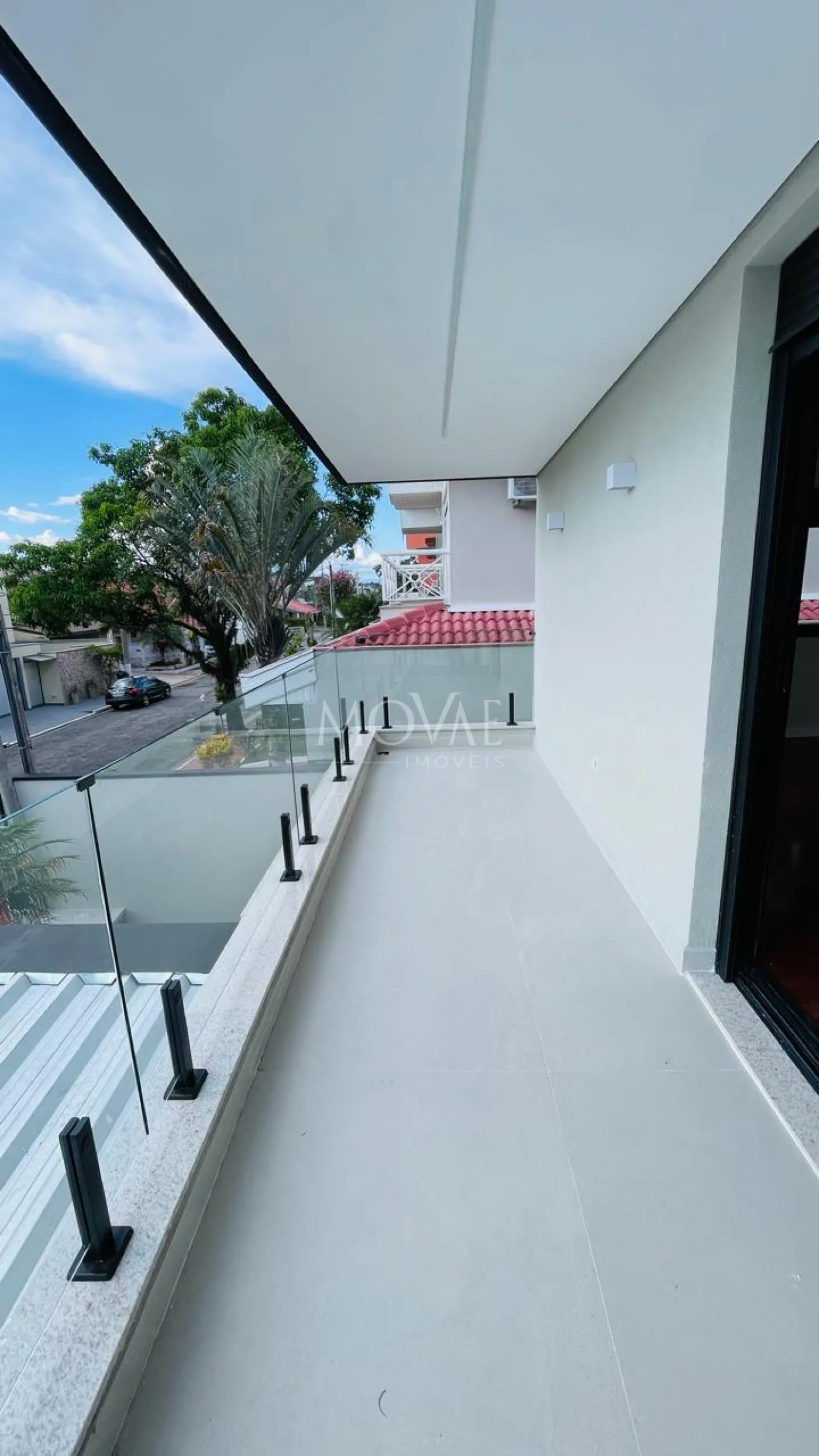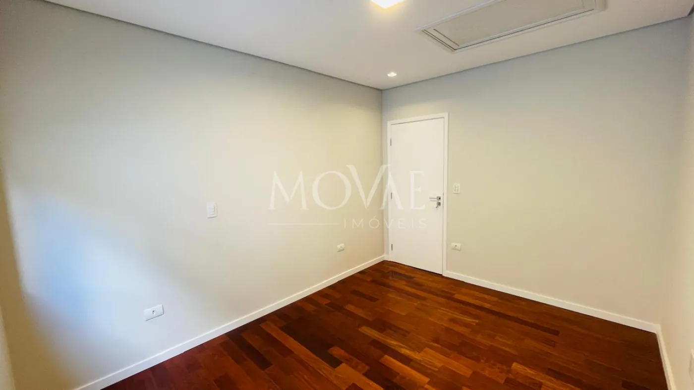 O piso térreo é revestido em porcelanato, conferindo elegância e praticidade, enquanto o pavimento superior possui acabamento em madeira, trazendo aconchego às áreas íntimas. O imóvel conta ainda com infraestrutura preparada para instalação de ar-condicionado.