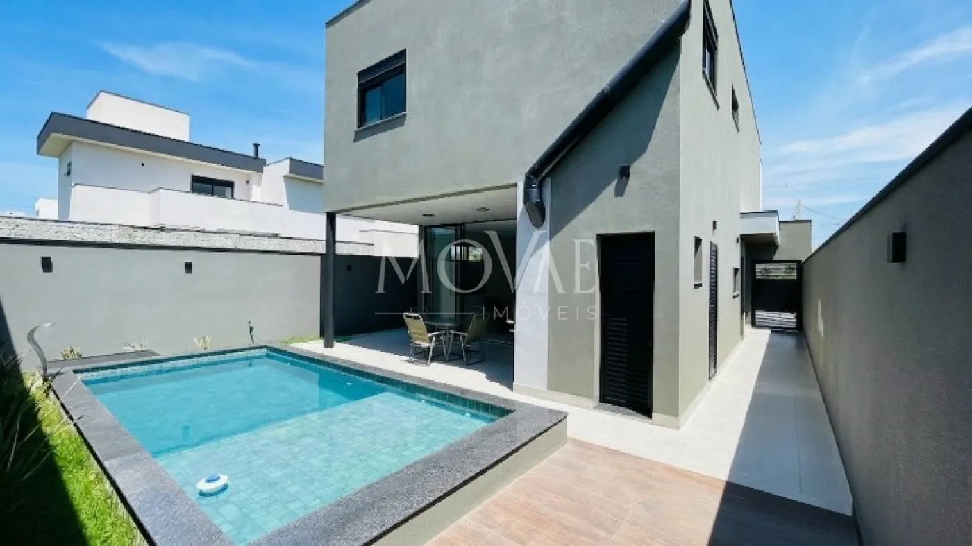 Excelente residência recém-construída, com arquitetura moderna e ambientes amplos, localizada em uma das melhores posições do condomínio, de frente para área verde, proporcionando mais privacidade, tranquilidade e contato com a natureza.