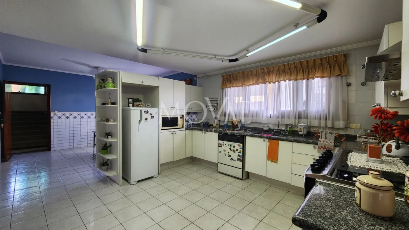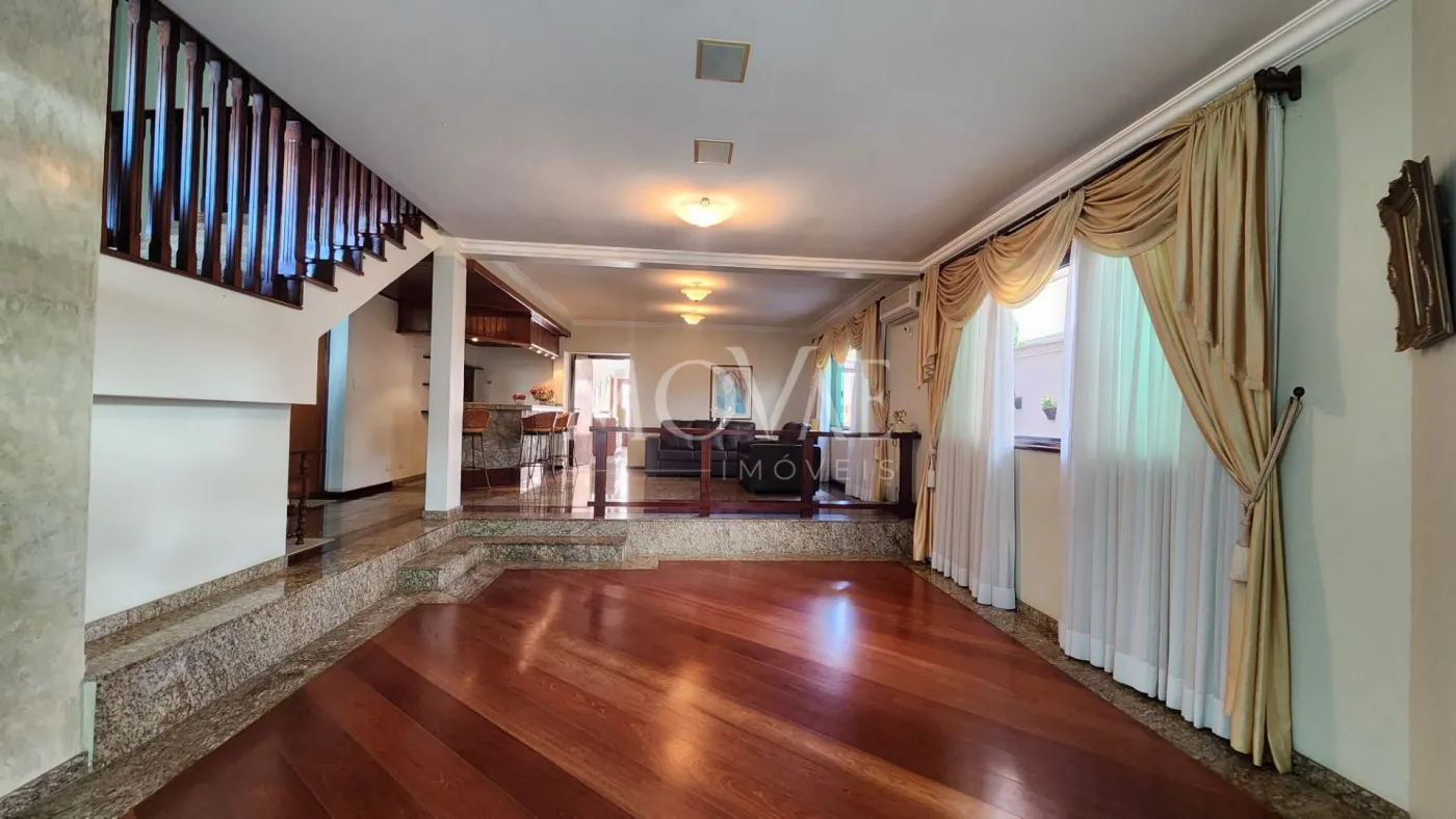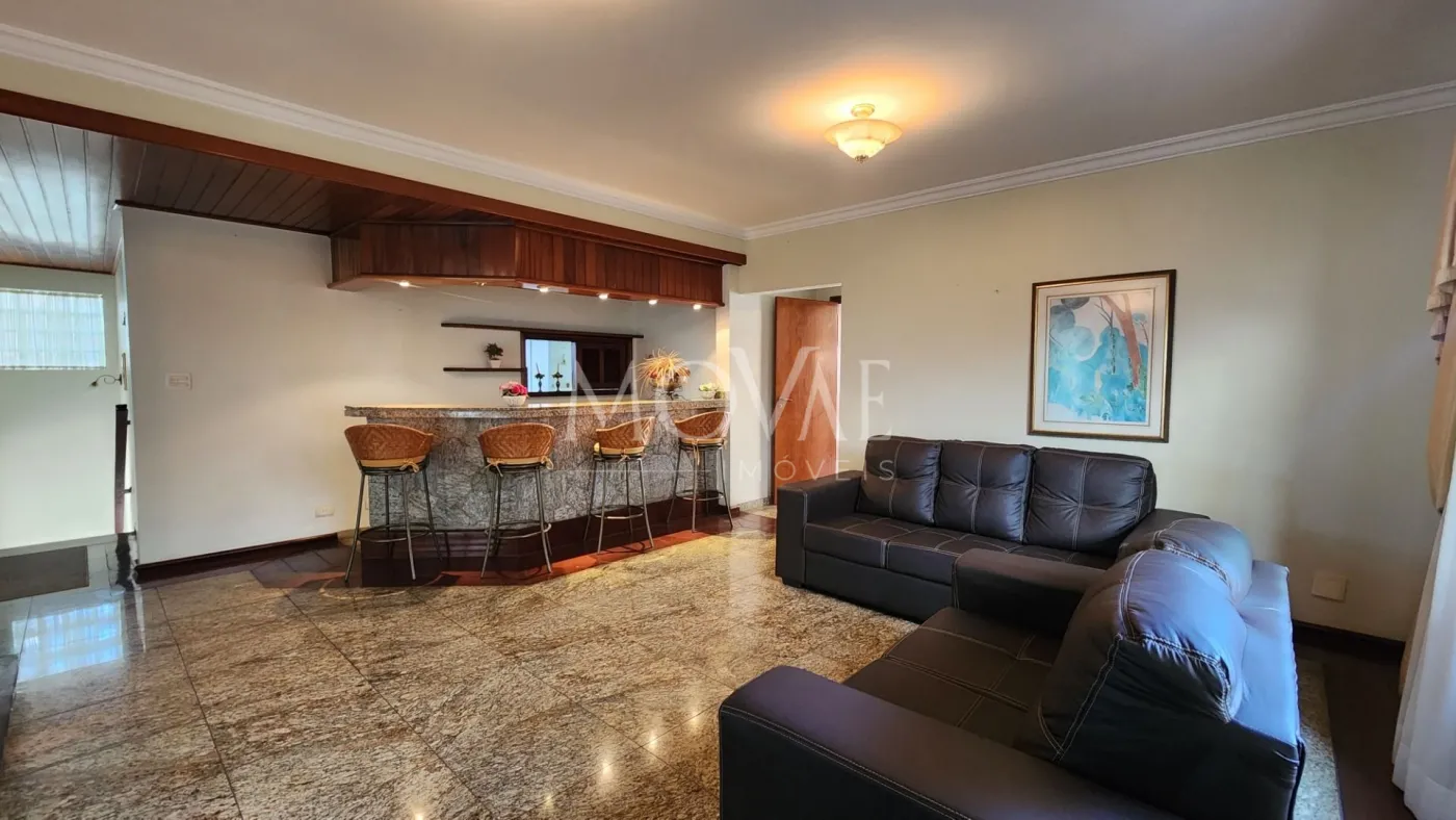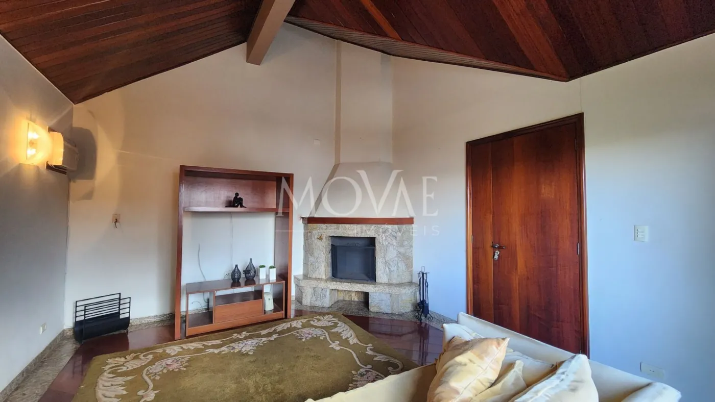 Sala de Estar, Sala de Jantar com um belo Bar, Lavabo e Sala de TV com Sacada e Lareira.