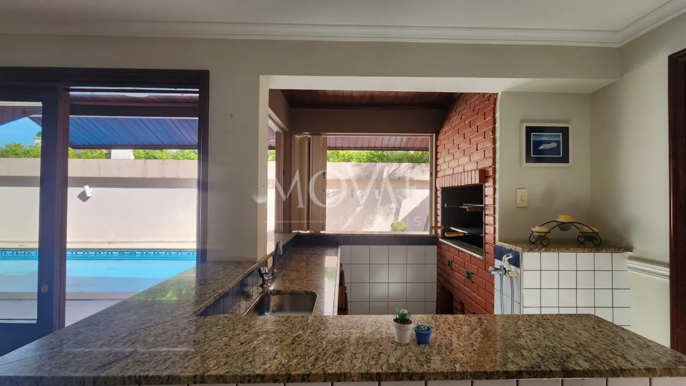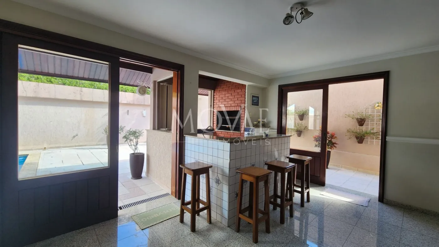 O Espaço Gourmet desta casa é interligado com a Piscina e conta com Salão, Banheiro e Churrasqueira Francesa.