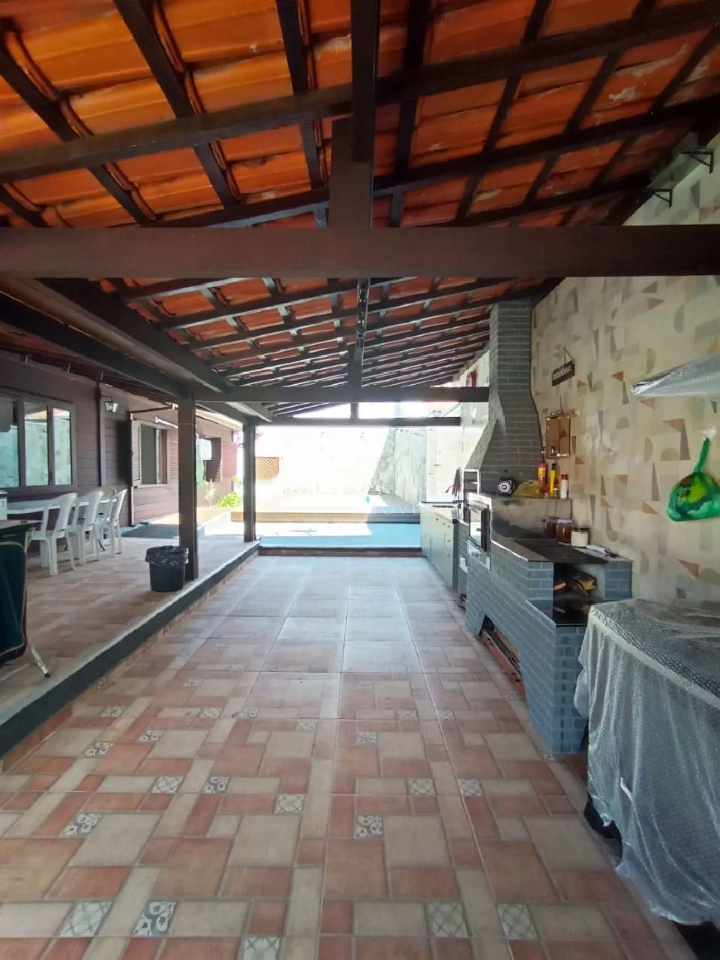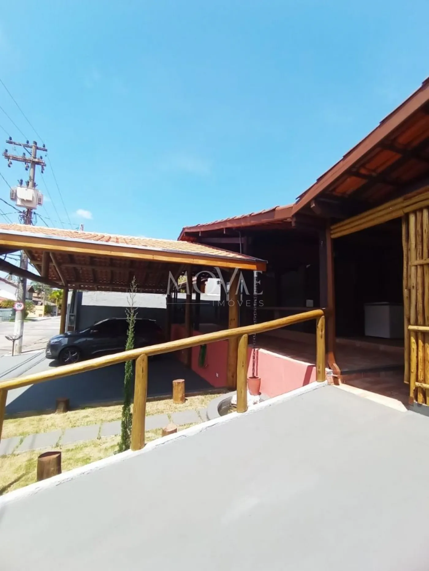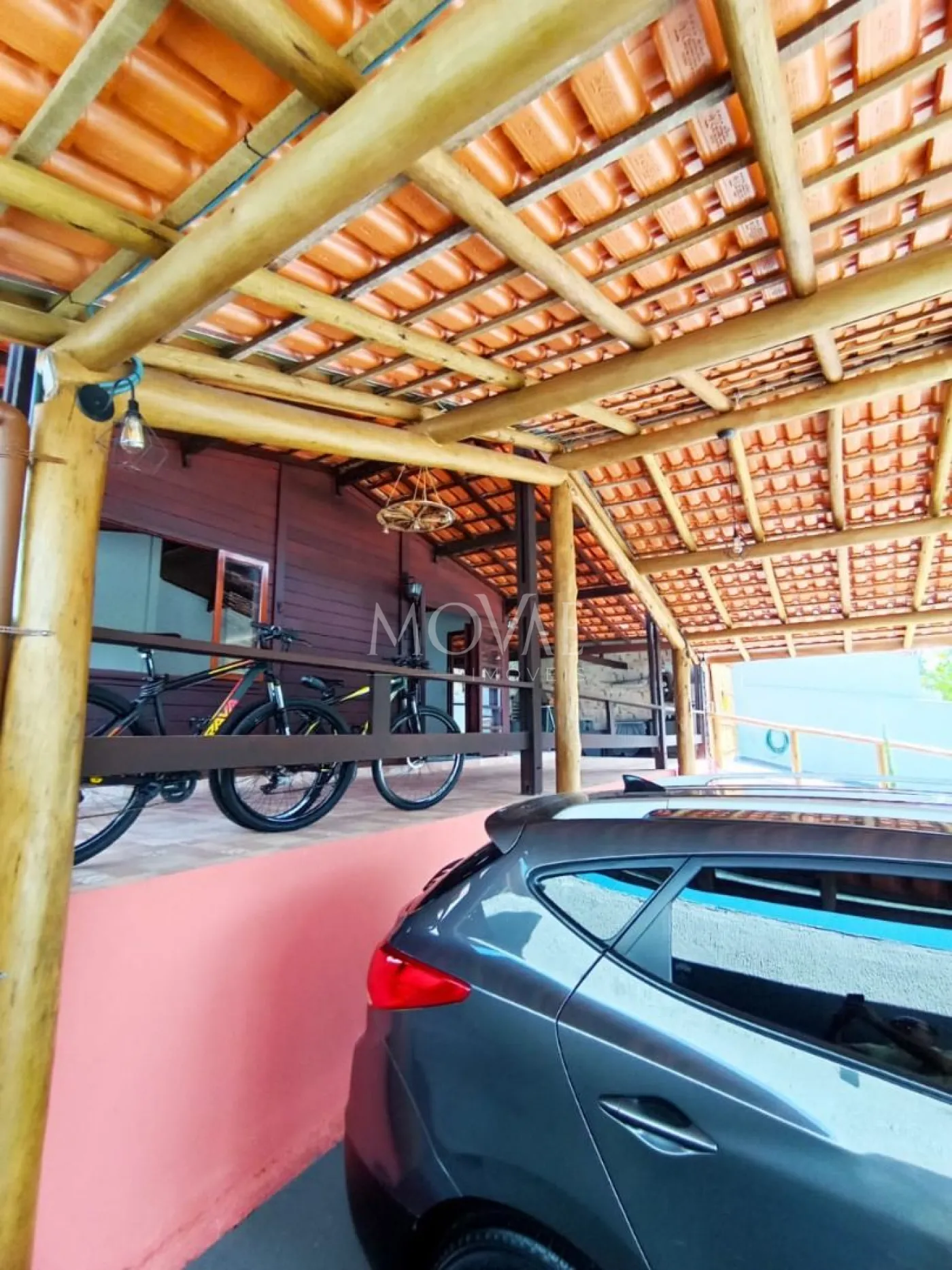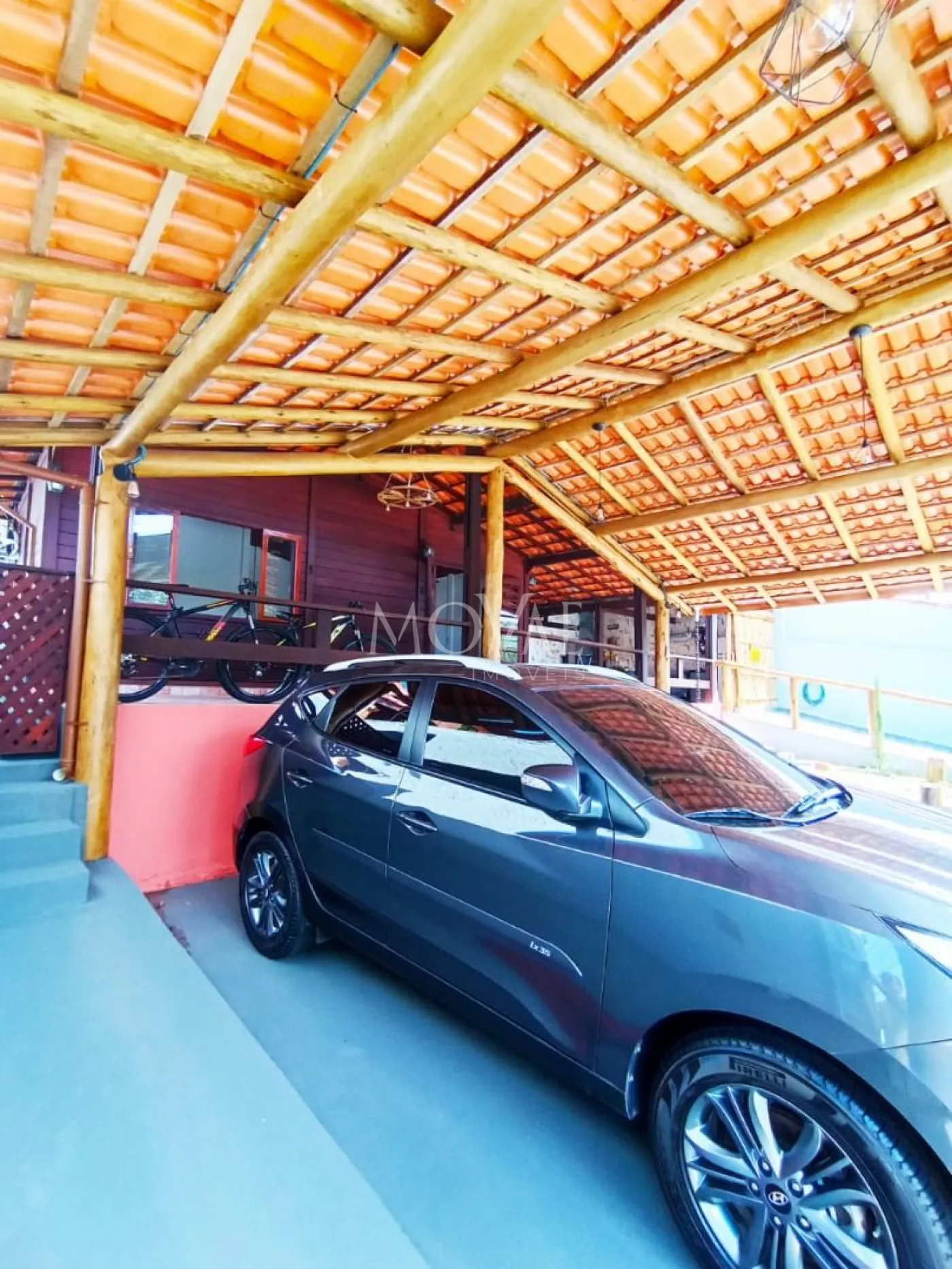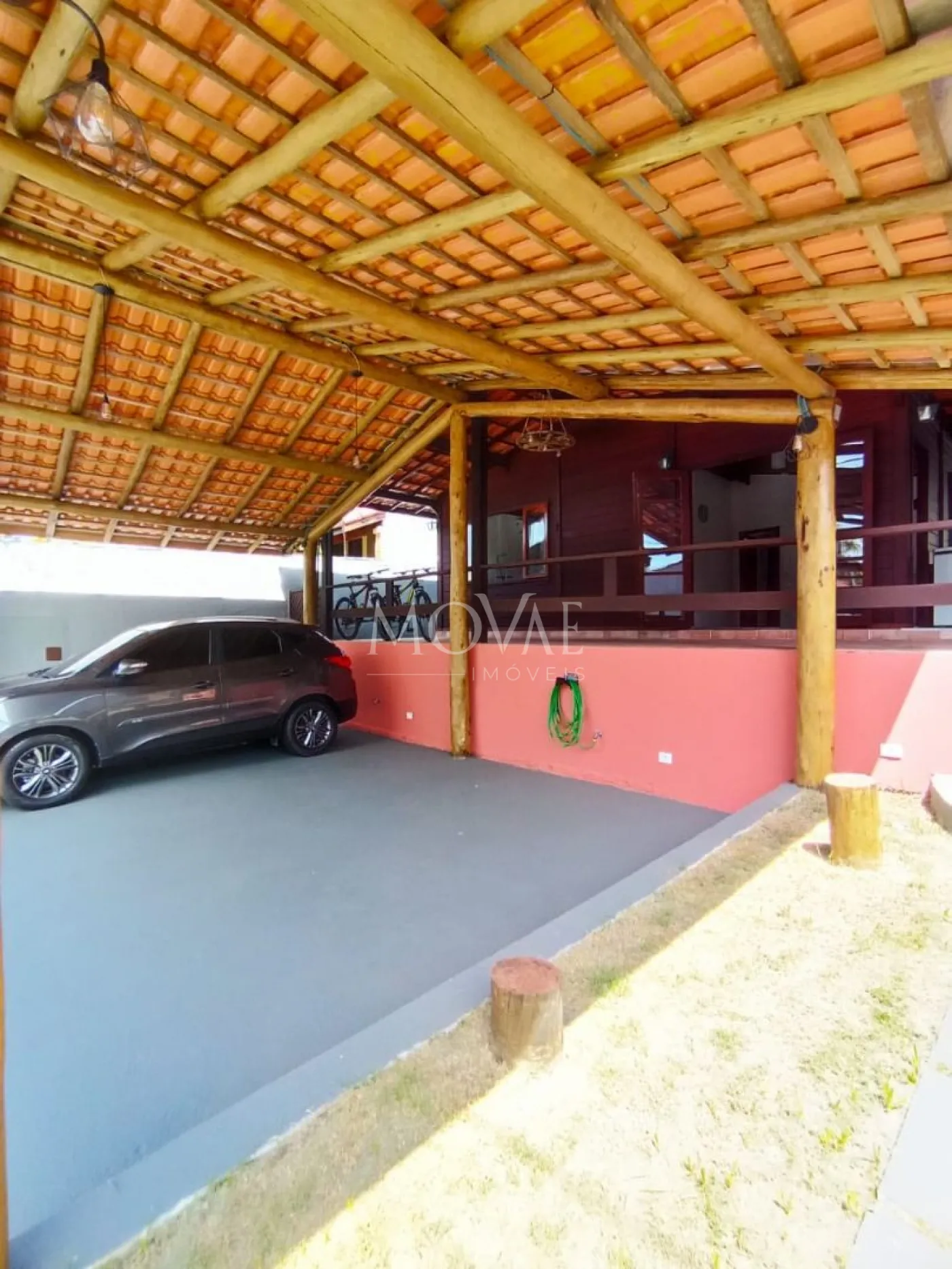 Garagem coberta para 3 carros.