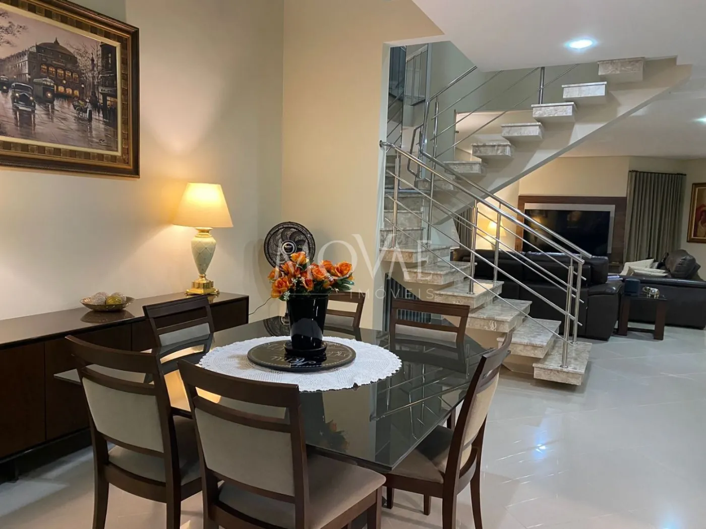 Acabamentos de Alto Padrão: Cada detalhe desta residência foi cuidadosamente projetado com acabamentos de luxo, como mármores Costa Flores e Via Láctea, proporcionando um ambiente sofisticado e elegante.
