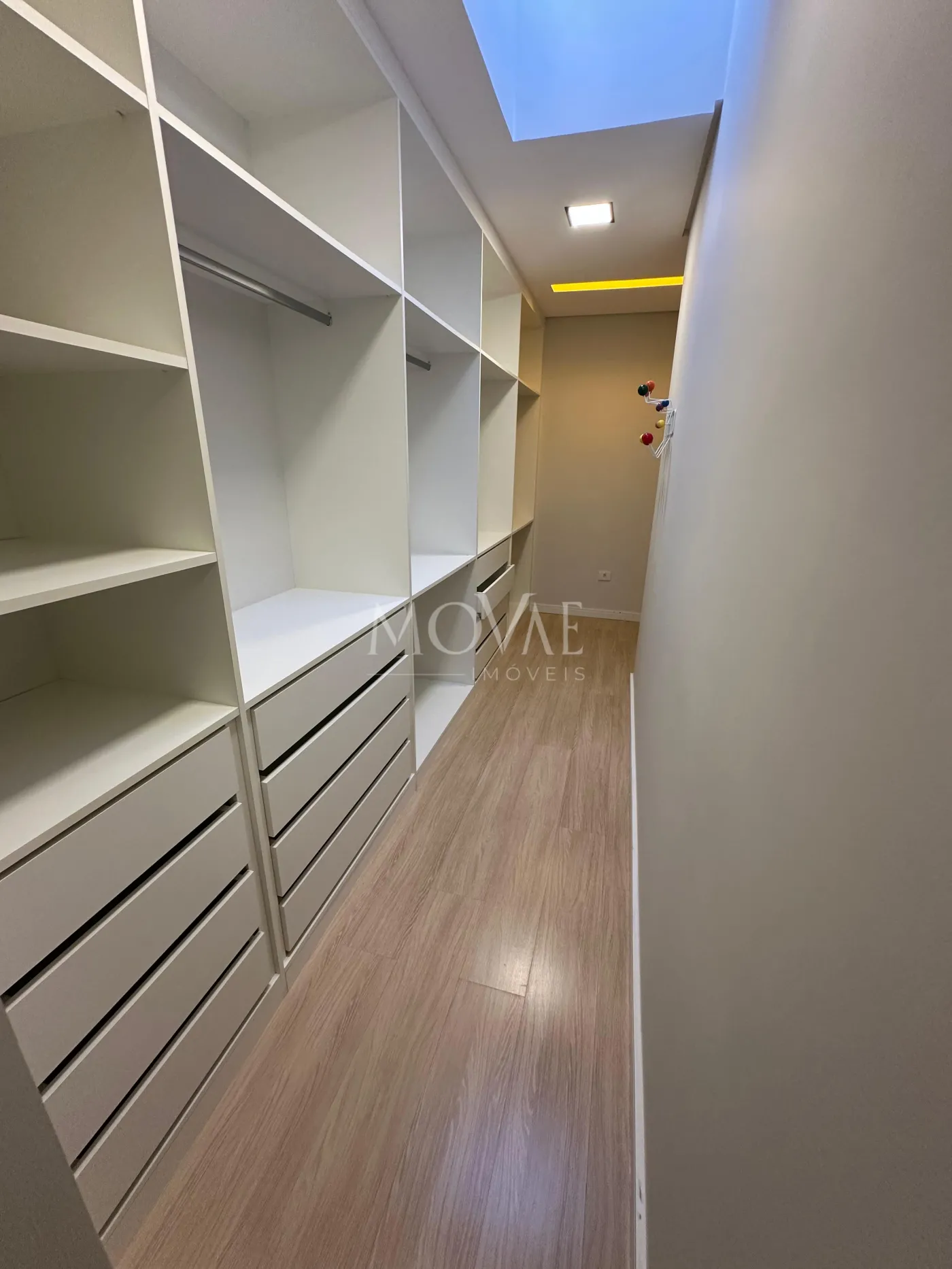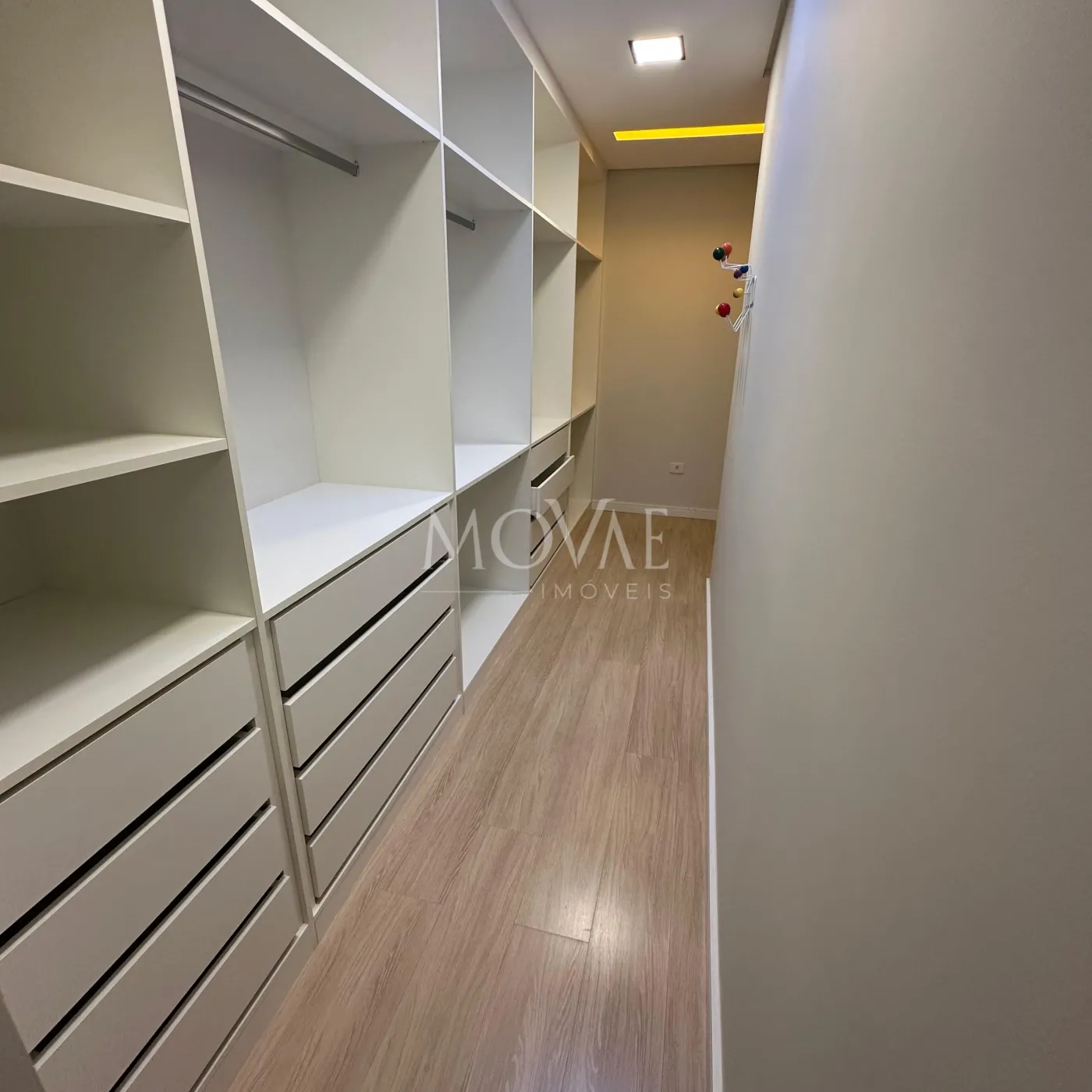 Roupeiro planejado no hall de circulação, oferecendo praticidade e organização.