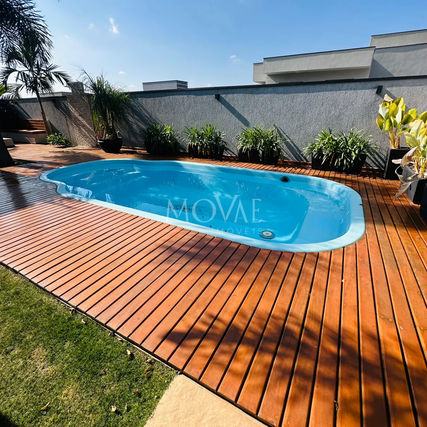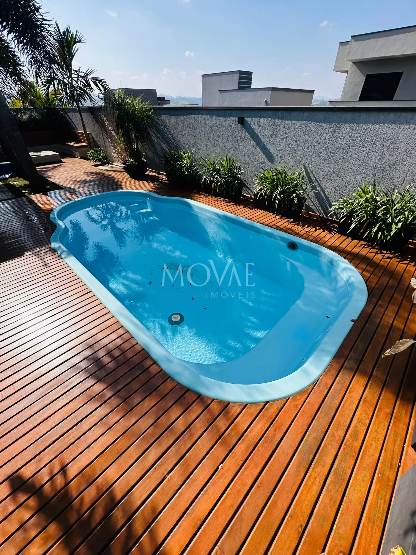 Piscina com prainha, perfeita para relaxar nos dias quentes, além de deck em madeira, ideal para espreguiçadeiras e momentos ao sol.