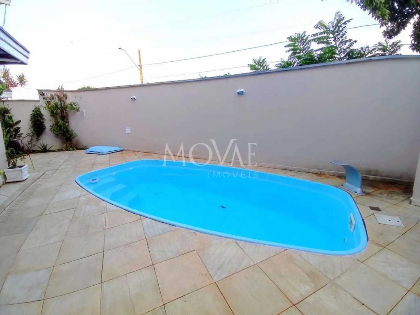 Piscina com hidromassagem, ducha e preparação para aquecimento