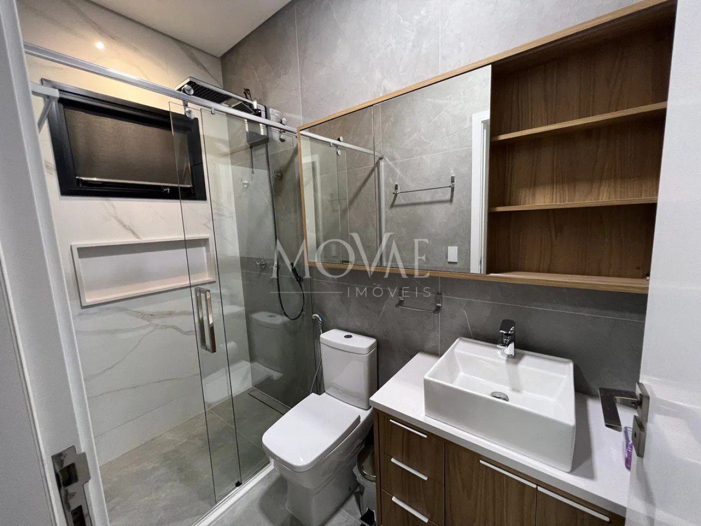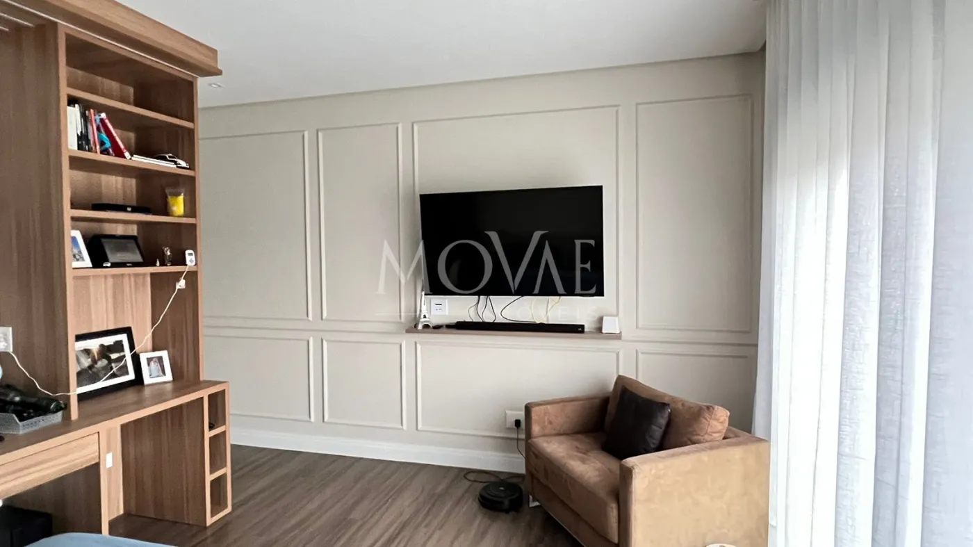 Suíte máster com closet, hidromassagem, cuba dupla, chuveiros independentes e som ambiente