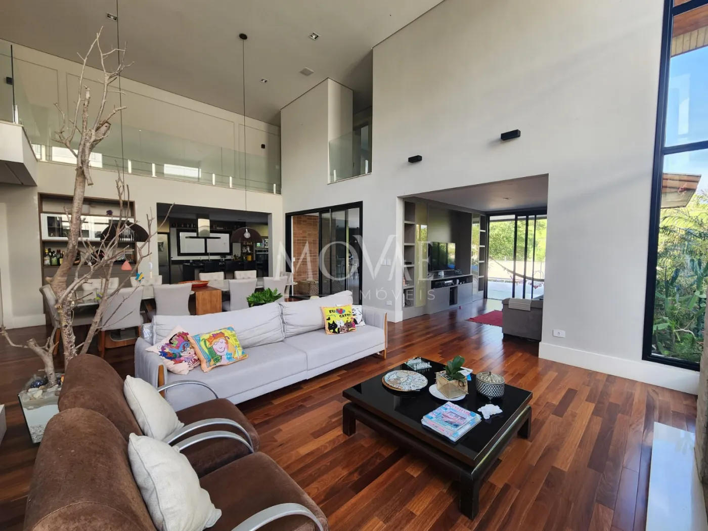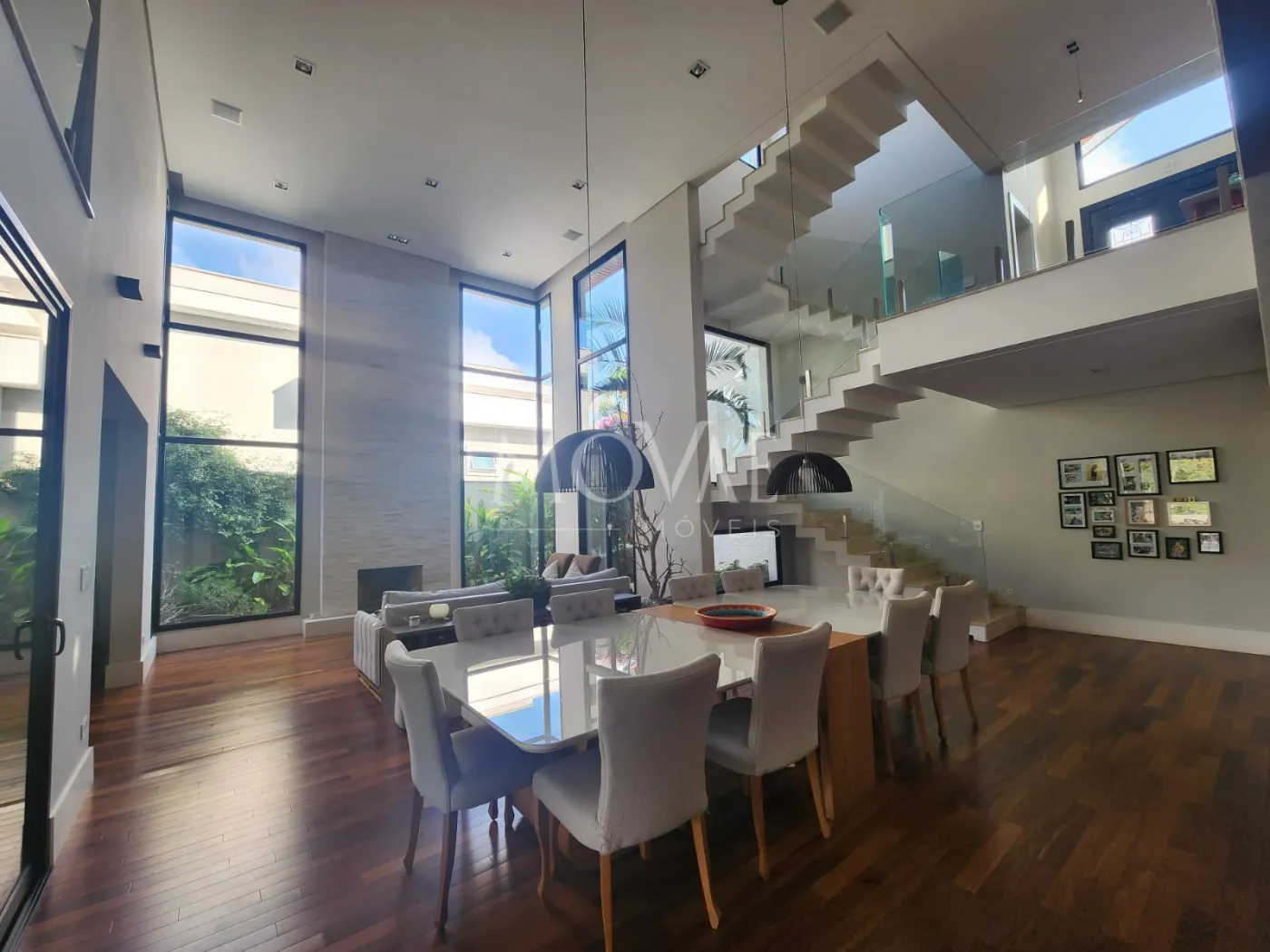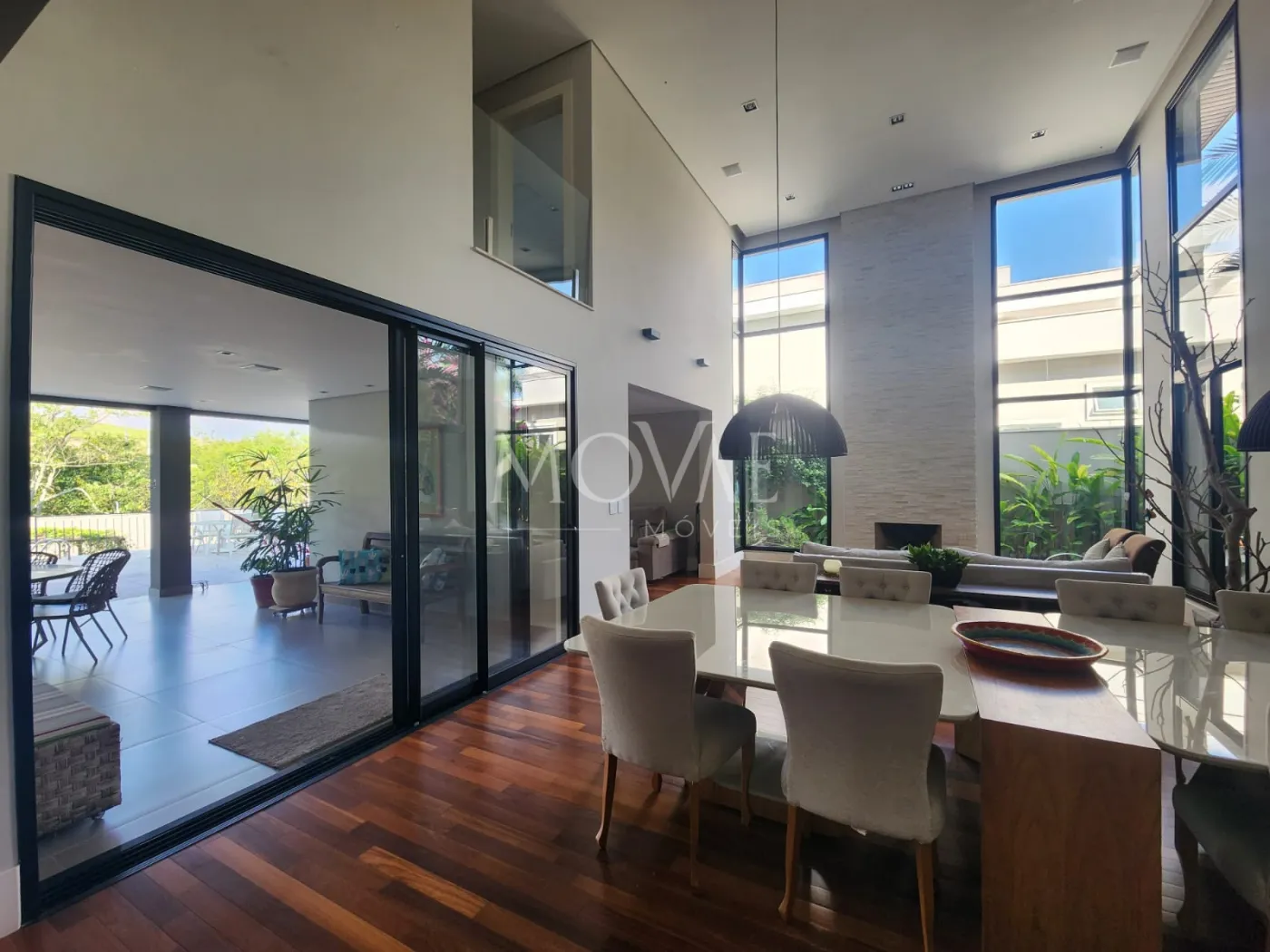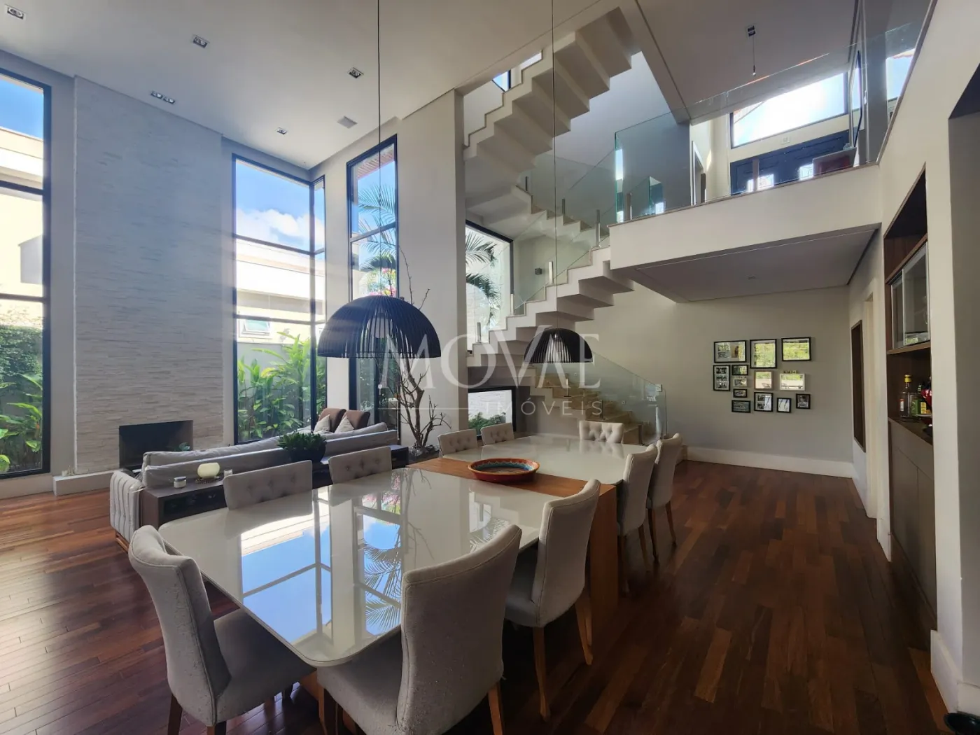 - Sala 03 ambientes, conceito aberto com pé direito duplo integrada com a cozinha e área gourmet: