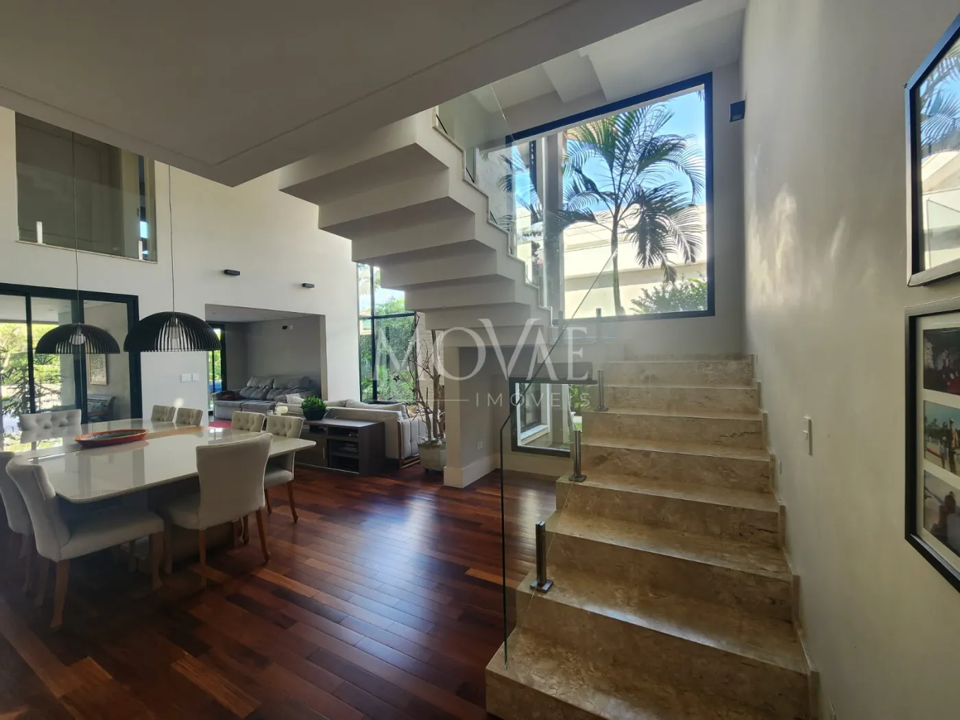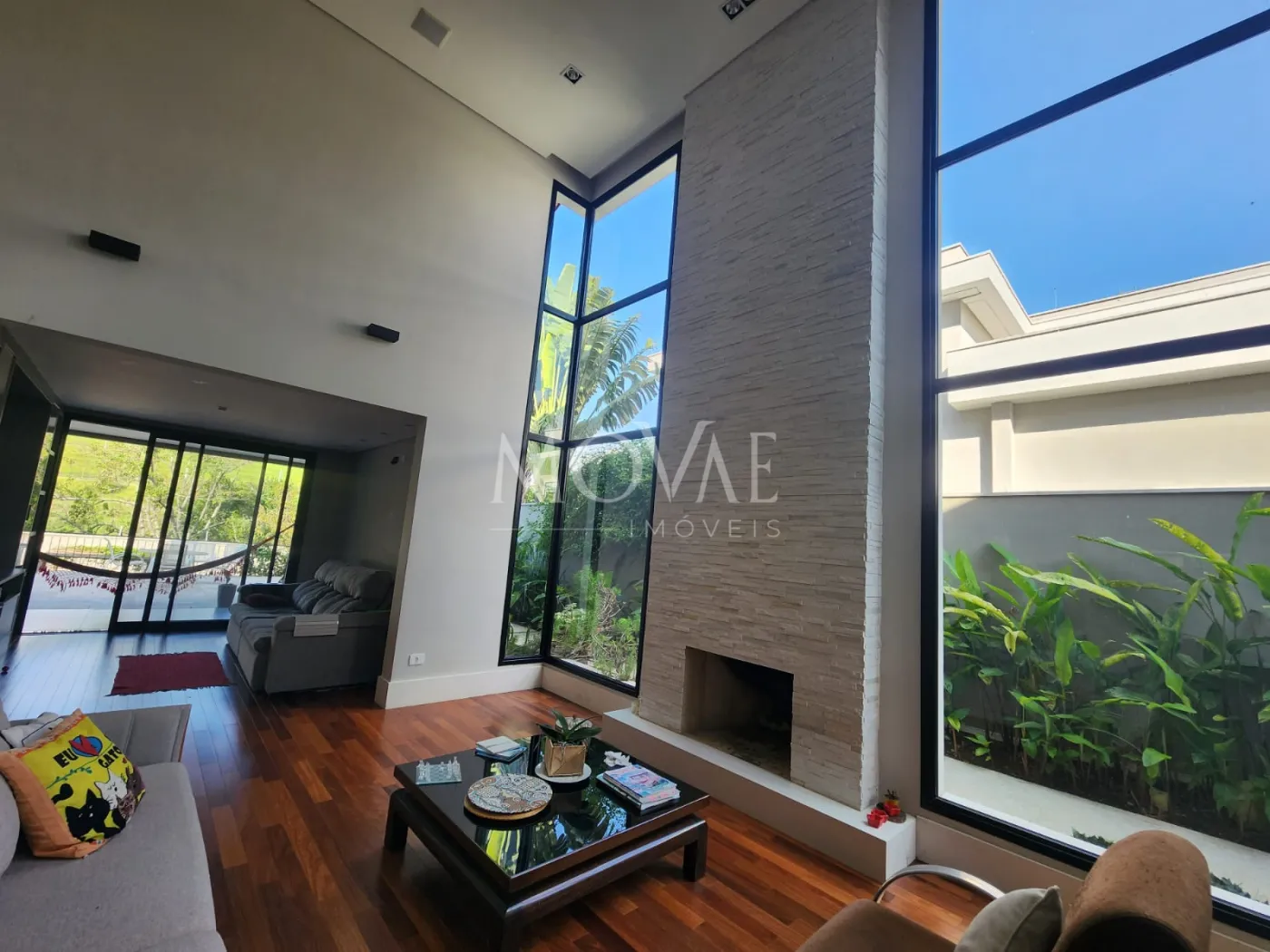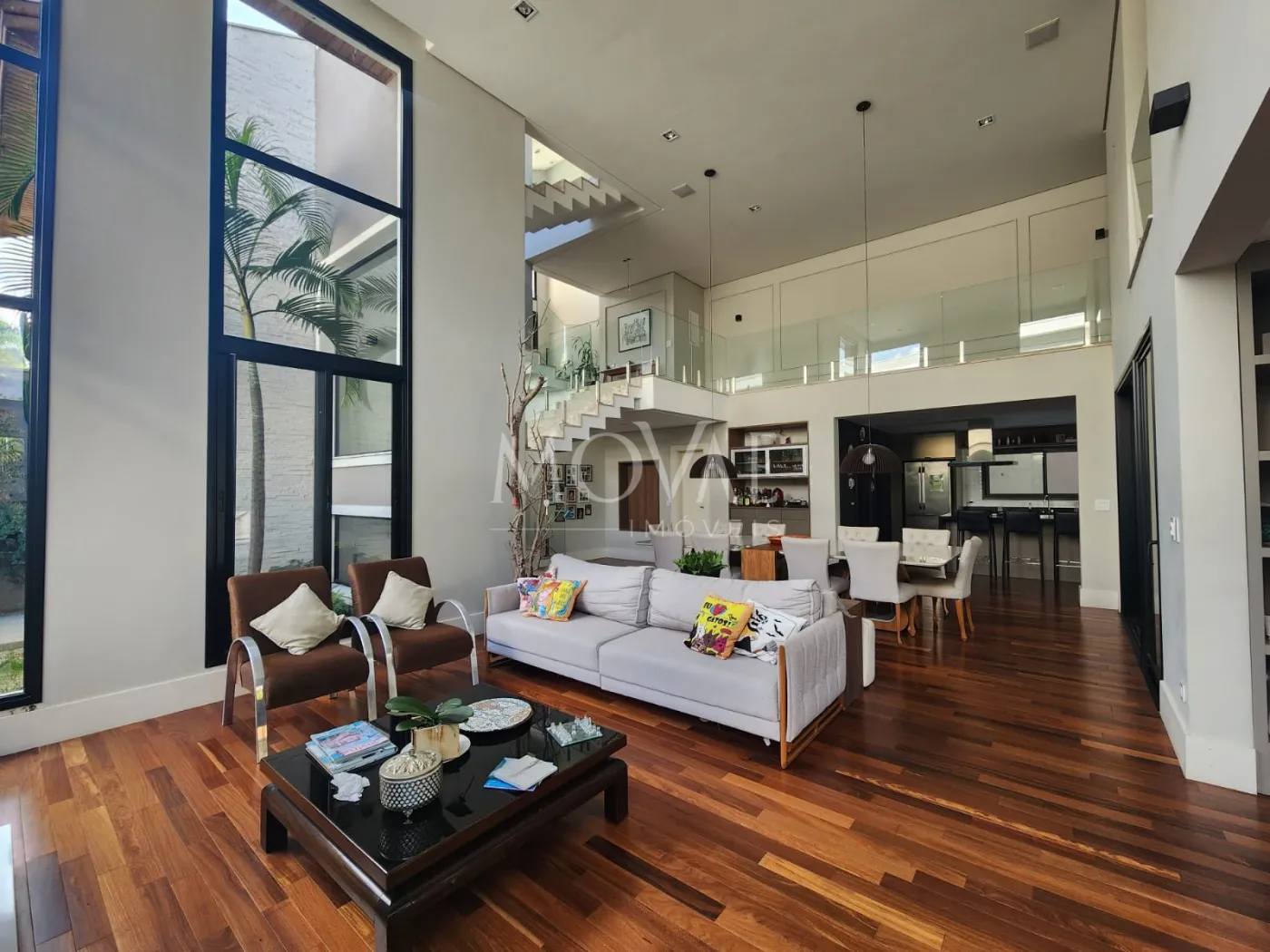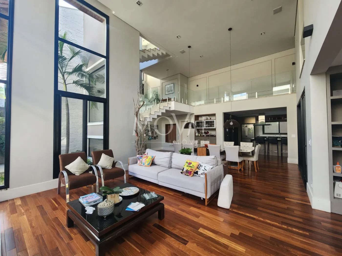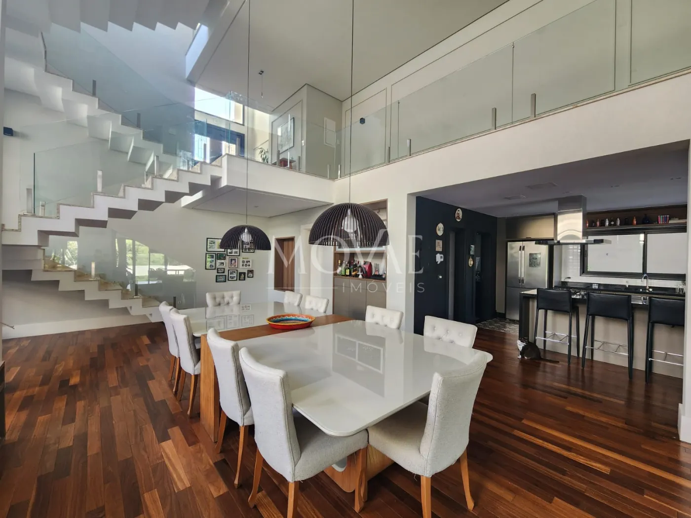 - Sala 03 ambientes, conceito aberto com pé direito duplo integrada com a cozinha e área gourmet: